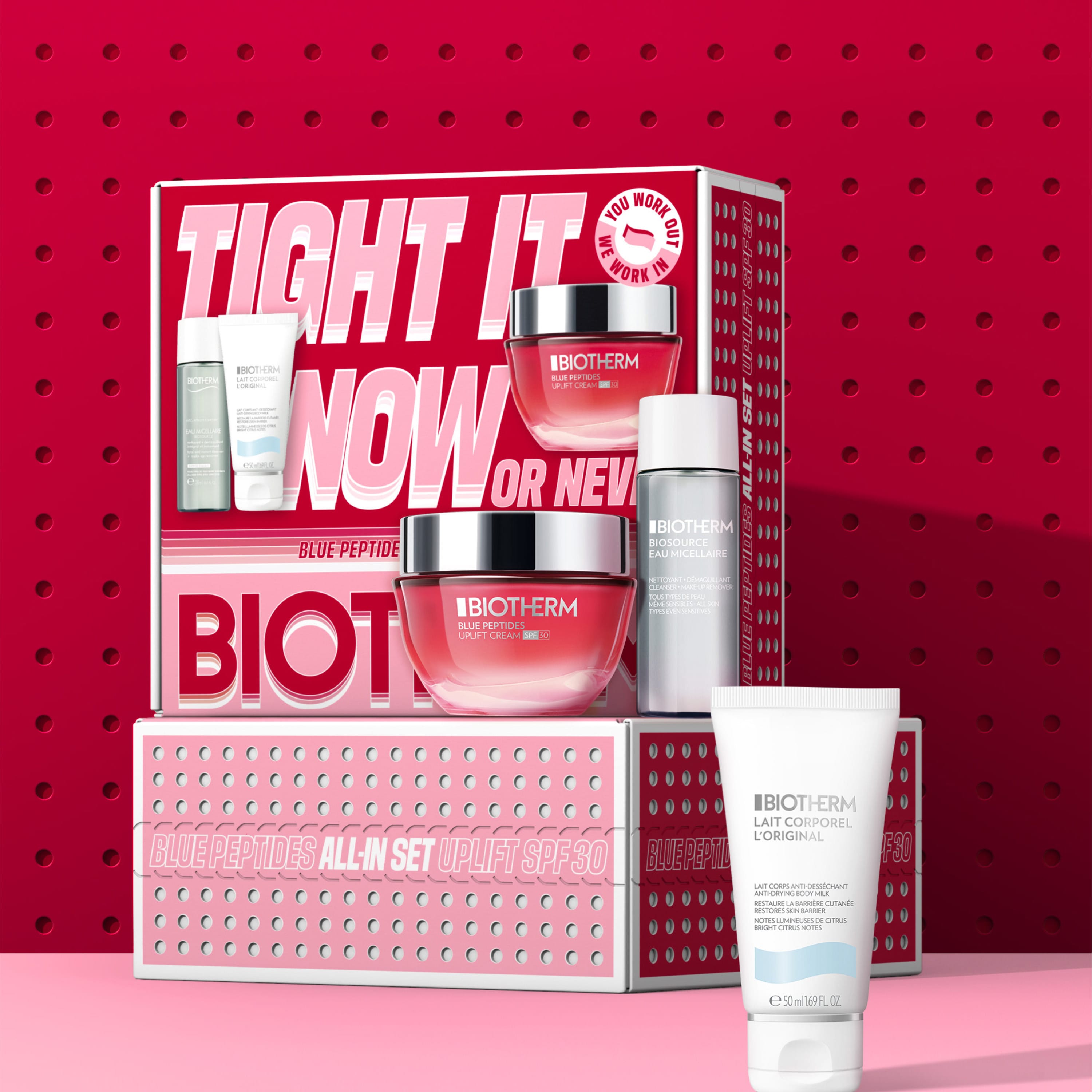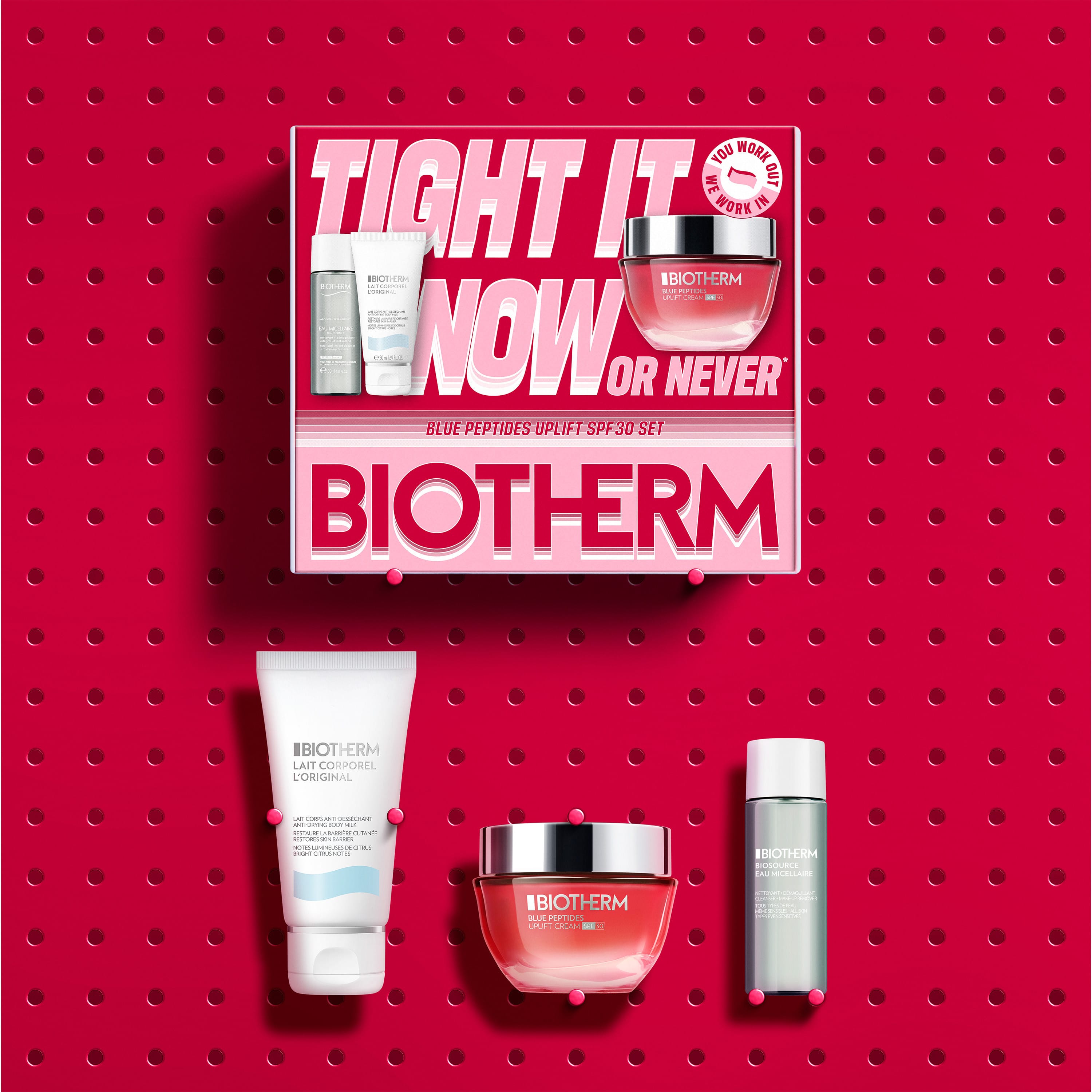 Biotherm Blue Peptides Uplift SPF30 Cream settið er vandað gjafasett sem hjálpar til við að gera húðina sýnilega stinnari og unglegri. Settið inniheldur dagkrem með SPF30 sem verndar húðina gegn sólargeislum, milt micellar hreinsivatn og nærandi krem sem styður við kollagenframleiðslu húðarinnar og eykur stinnleika hennar.