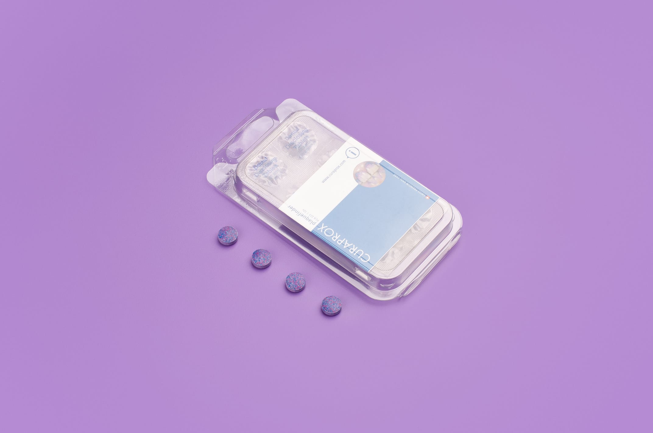 Litatöflur sem sýna óhreinindi í munni og hvar aukin burstaþörf er. Töflurnar eru tuggðar og eftir um 30 sekúndur koma óhreinindi í ljós. Töflurnar eru með vægu ávaxtabragði.
