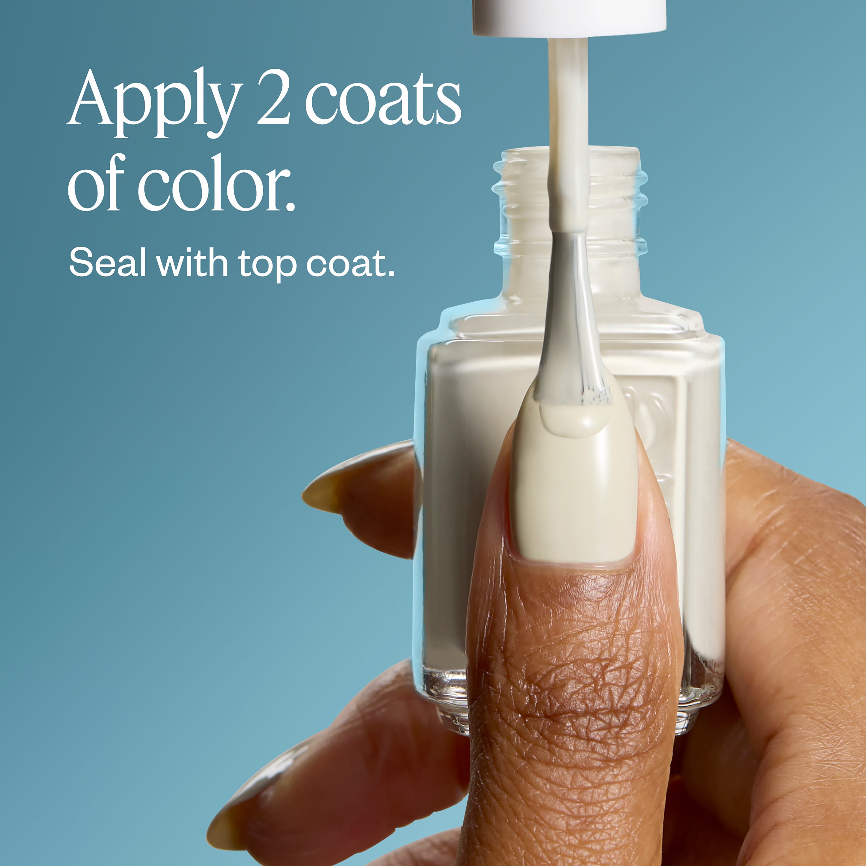 Til að ná sem bestum árangri skaltu fylgja 4 skrefa essie rútínunni: Skref 1: Berðu eitt lag af essie grunnlakki (base coat). Prófaðu Strong Start með styrkjandi formúlu eða Here to Stay fyrir lengri endingu litarins. Skref 2: Berðu tvö lög af uppáhaldslitnum þínum frá essie. Skref 3: Berðu eitt lag af essie yfirlakki (top coat) til að verja litinn og gefa glans. Prófaðu Stay Longer fyrir góða endingu í allt að 7 daga, Gel Setter fyrir gel líkan lit og glans eða Speed Setter fyrir hraðari þurrkun. Skref 4: Ljúktu rútínunni með því að bera Apricot Nail & Cuticle Oil á hverja nögl til að næra naglaböndin. Endurtaktu daglega til að ná sem bestum árangri.
