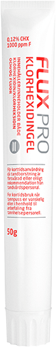Flux klórhexidín gelið inniheldur bæði klórhexidín og flúor. Gelið er til skammtímameðferðar og er oft notað samkvæmt ráðleggingum tannlækna, til dæmis eftir skurðaðgerð, vegna bólgu í tannholdi eða eftir að tönn hefur verið fjarlægð. Án alkóhóls og litarefna. Kemur með hentugum stút og er þetta því fullkomið fyrir staðbundna notkun þar sem þörf er á. Bragð: Coolmint