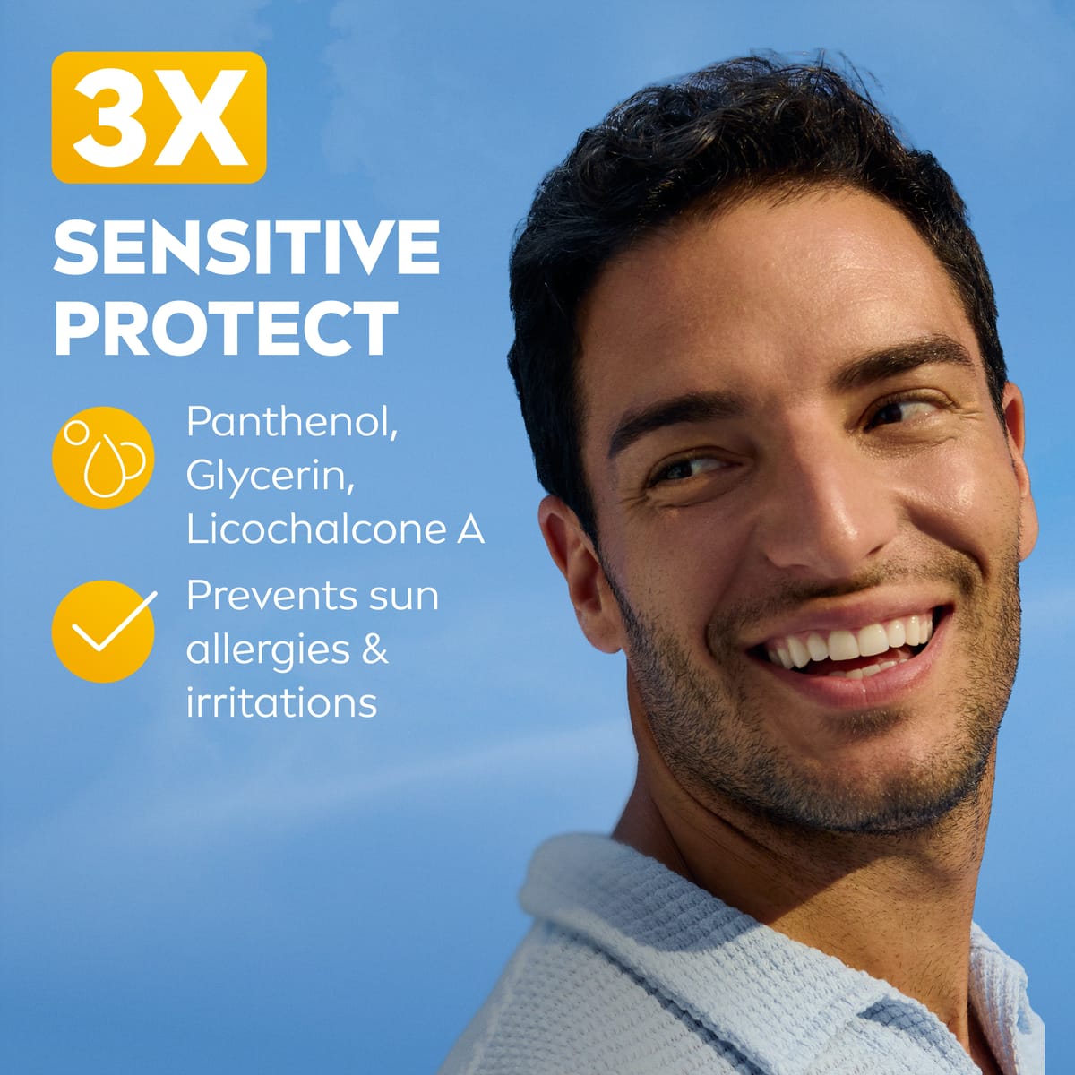 NIVEA UV Face Sensitive SPF 50+ er ný kynslóð sólarvarna fyrir andlitið sem veitir mun meira en hefðbundið SPF. Með sinni einkaleyfisbundnu UV tækni vinnur hún gegn ljósöldrun án þess að stífla svitaholur og býður upp á 98% vörn gegn UVB geislum.