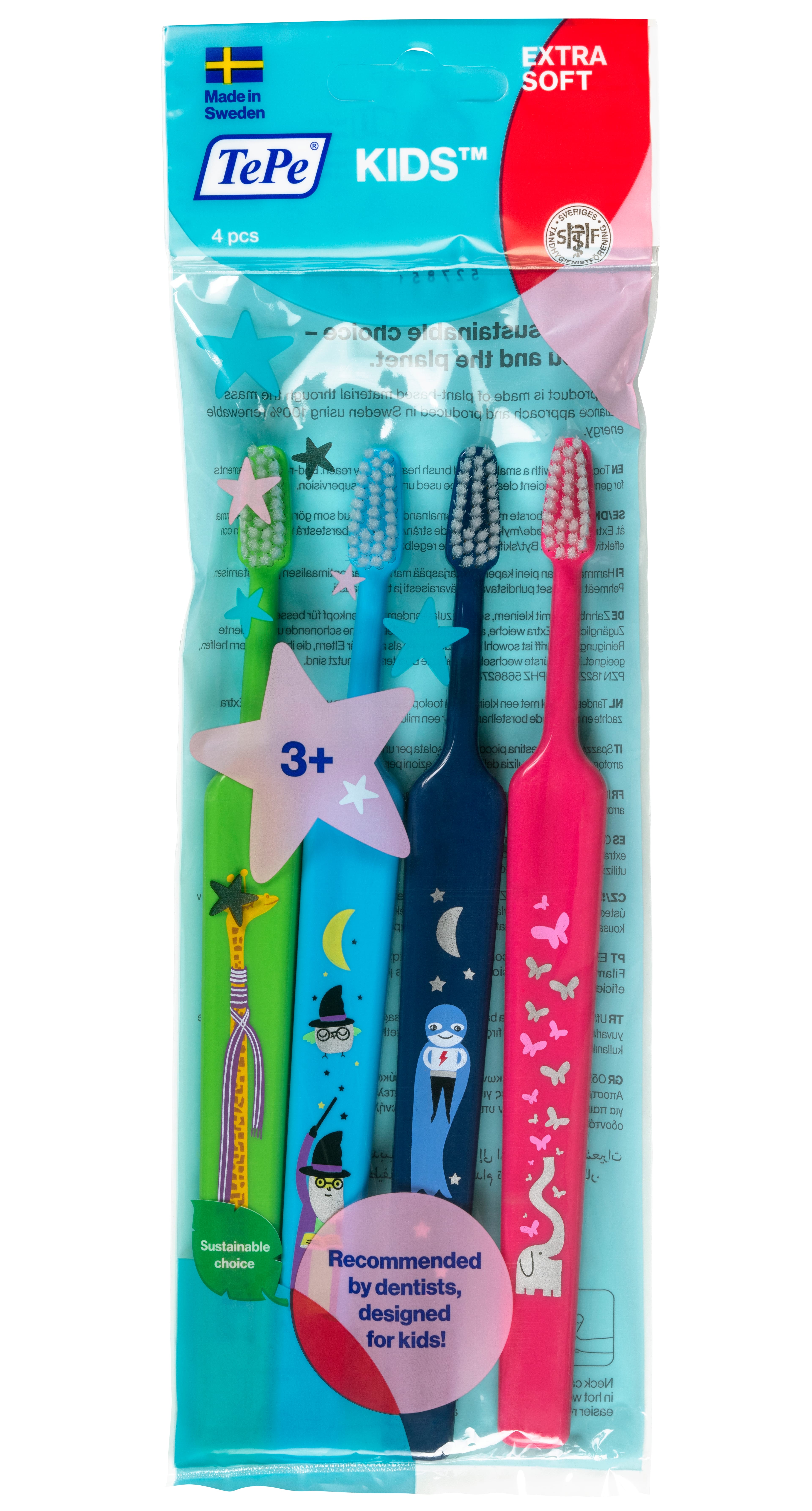 4 extra mjúkir barnatannburstar saman í pakka