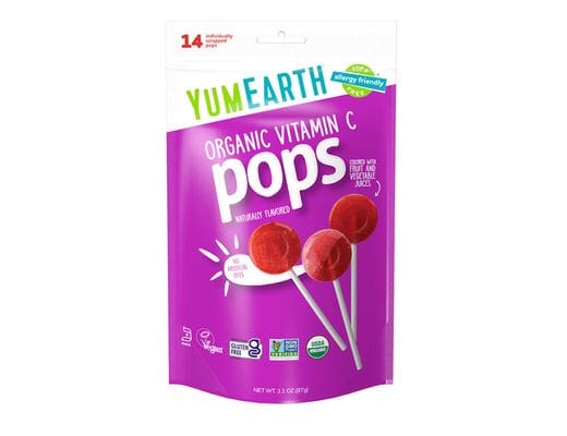 YumEarth vítamín c sleikjóar eru ljúffengir sleikjóar með náttúrulegu berjabragði, framleiddir úr lífrænum innihaldsefnum og algjörlega lausir við gervi litar- og bragðefni og innihalda hvorki glúten, hnetur né mjólkurvörur