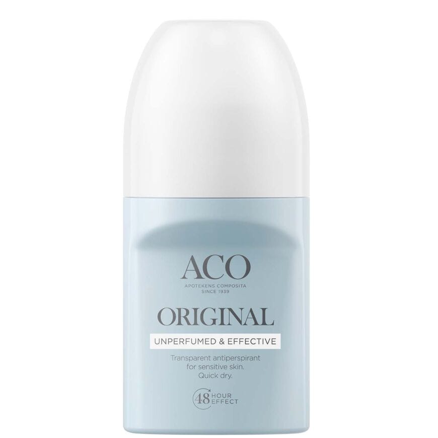 ACO Deo Original án ilmefna er húðvænn svitalyktareyðir. Þornar hratt og veitir vörn í allt að 48 klukkustundir. Hentar viðkvæmri húð.