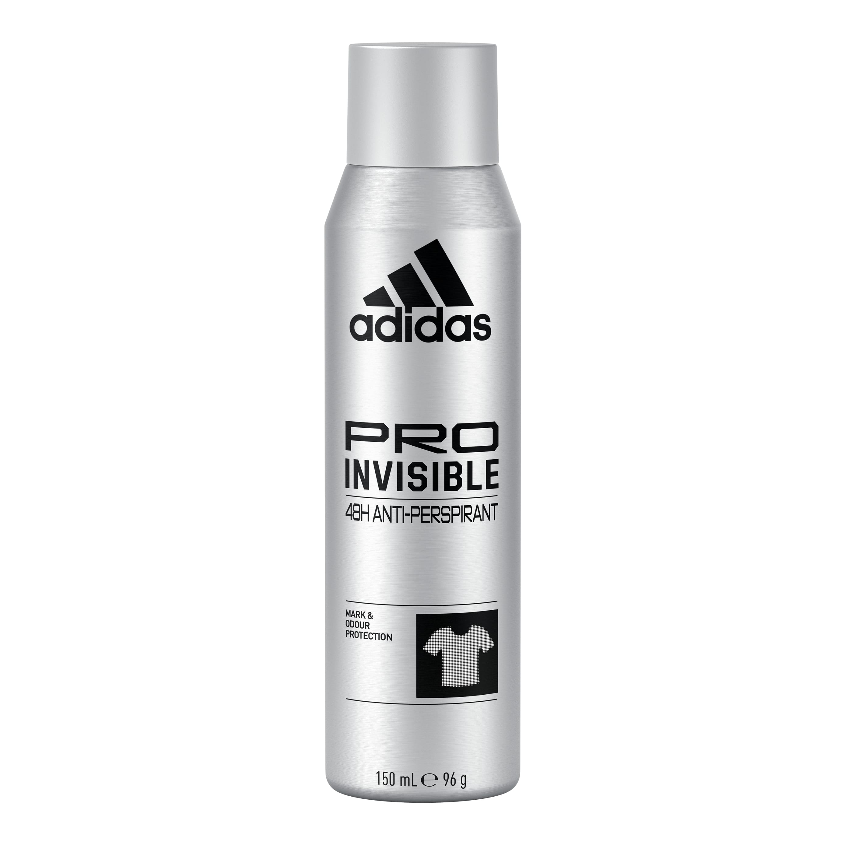 Adidas PRO INVISIBLE anti-perspirant svitalyktareiðir endist í 48 klst. Ferskur, hlýr og örlítið kryddaður ilmur með leður og viðartónum. Formúlan er Vegan, prófuð af húðlæknum og án alkóhóls. Kemur í veg fyrir myndun svitabletta á fötum.