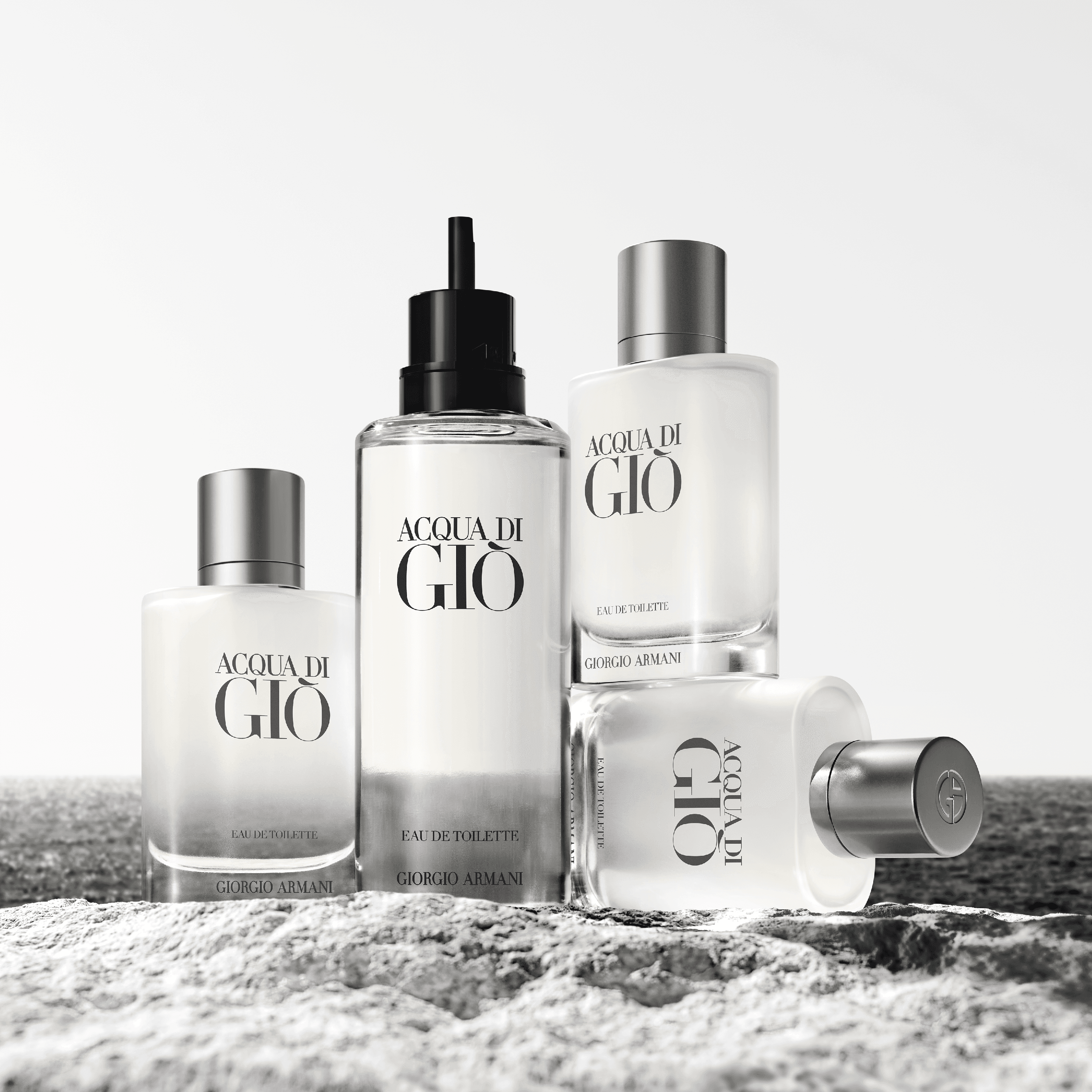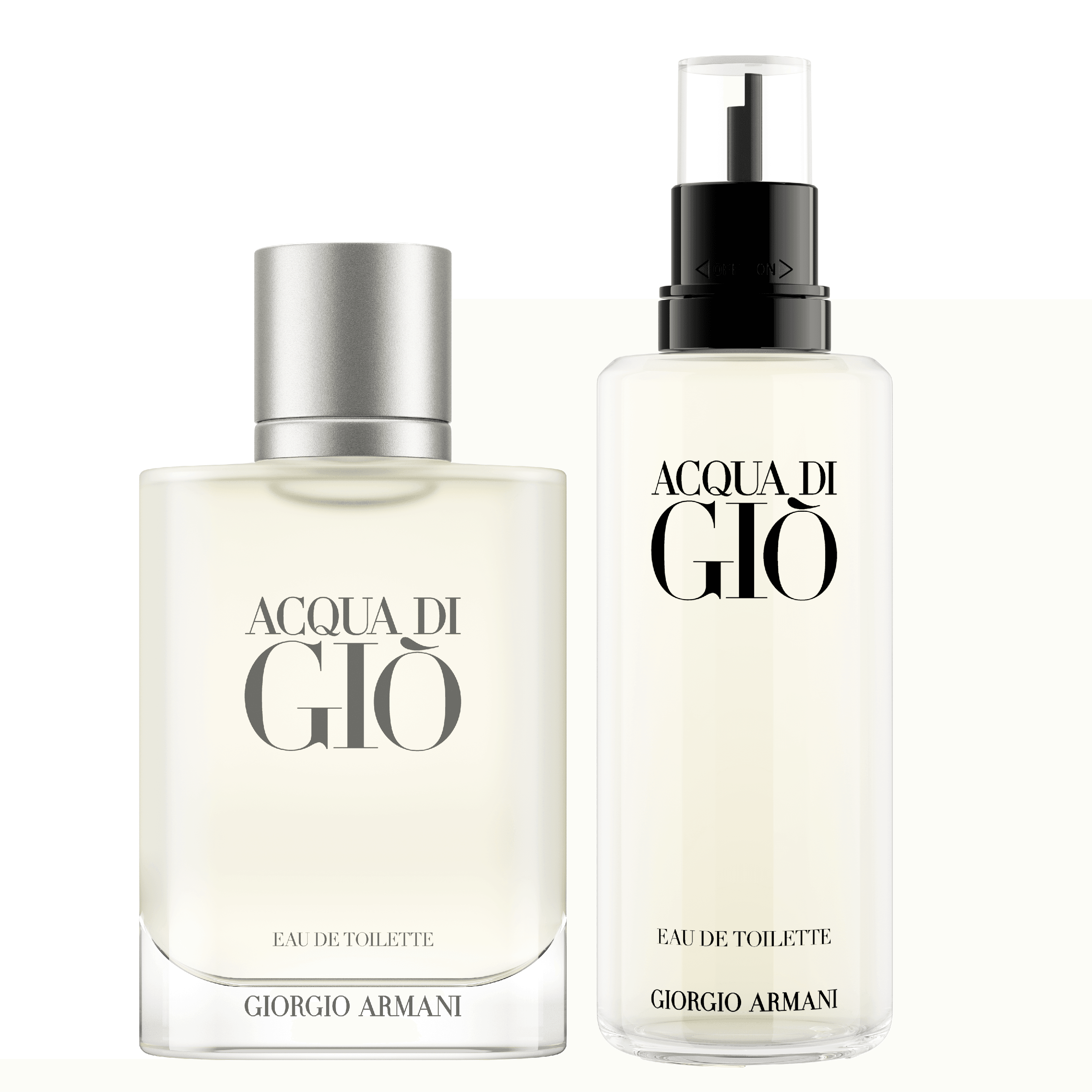 Áfylling á Acqua di Gio edt. Ferskur og hljómmikill ilmur með viðarkeim sem fangar allan kraft hafsins í klassísku og fáguðu glasi Acqua di Gio.