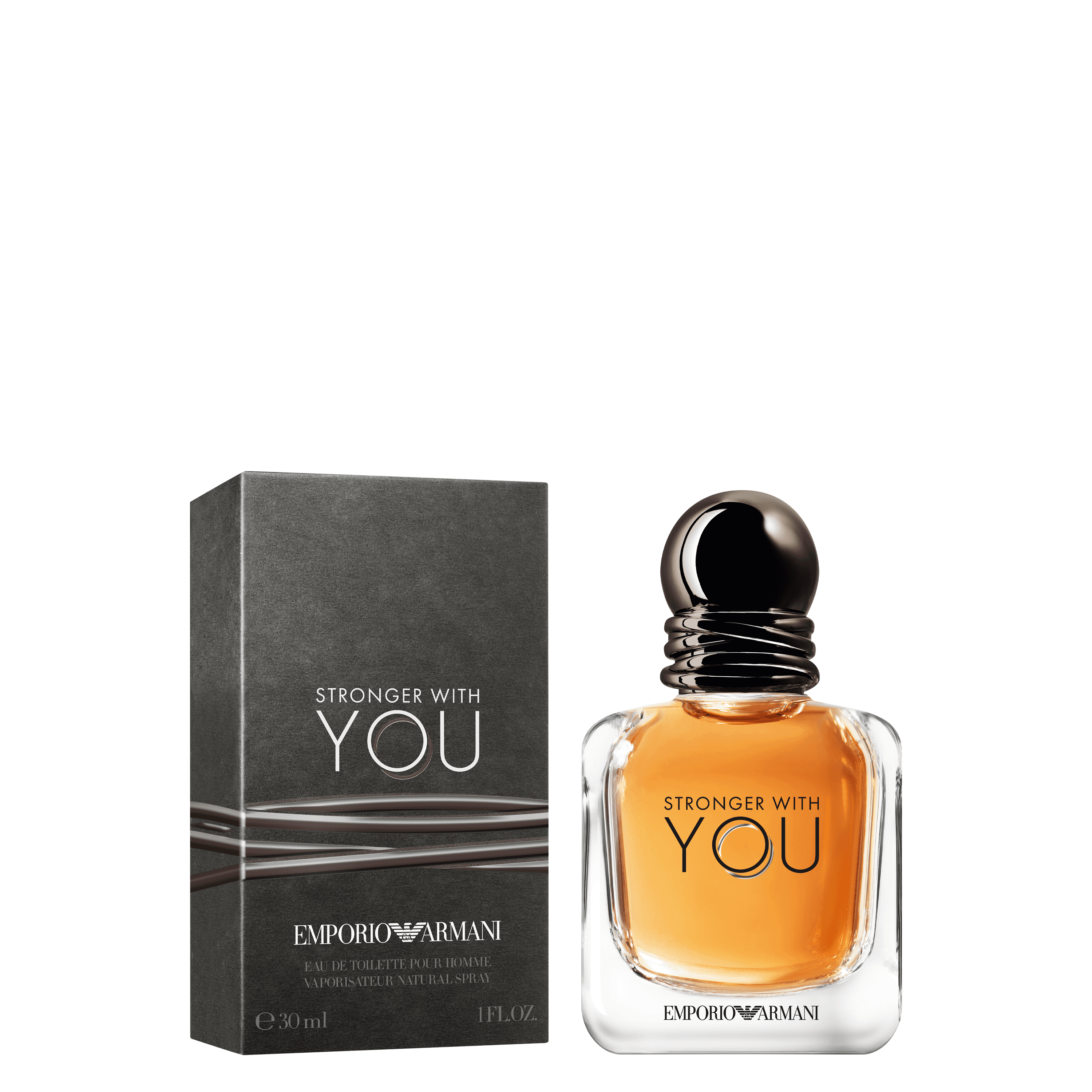Emporio Armani Stronger With You Eau de Toilette. Lifir í núinu og mótast af orku nútímans. Óútreiknanlegur ilmur sem kemur á óvart með frumleika rétt eins og kryddaður keimur í efstu tónunum. Blanda af kardimommum, bleikum pipar og fjólubláum laufum.