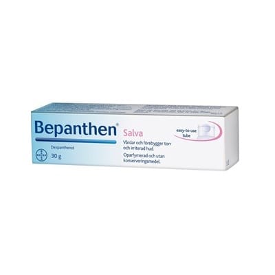Bepanthen smyrslið inniheldur virka efnið dexpantenol sem kemst inn í húðina og er breytt í B5 vítamín. Dexpantenol styrkir húðina og byggir upp ytra lag húðarinnar. Smyrslið er klínískt prófað og inniheldur engin rotvarnarefni. Bepanthen smyrsl er hægt að nota á bleyjusvæði þar sem það stíflar ekki svitaholur, heldur leyfir húðinni að anda. Smyrslið er auðvelt að bera á húðina og heldur því mjúku. Bepanthen virkar vel á þurra, sprungna og viðkvæma húð til dæmis hendur og fætur, varir, munnvik nös, geirvörtur eftir brjóstagjöf, minni rispur og sólbruna Án ilms og litarefna