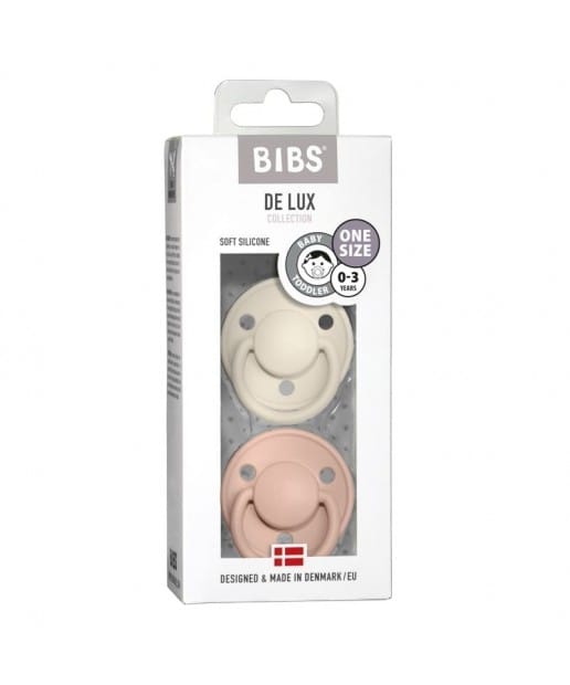 BIBS De Lux snuðin eru með túttu sem er hönnuð til að líkja eftir brjóstinu og stuðla að svipaðri staðsetningu tungunnar líkt og þegar barn sýgur brjóst. Sama tútta og er á Colour snuðunum nema silicone. Kemur í einni stærð.