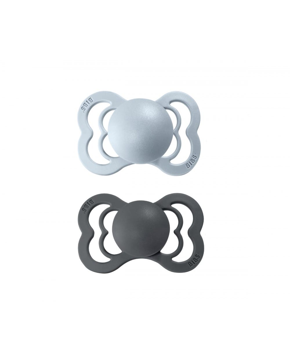 BIBS Supreme snuðin eru með fiðrilda laga skjöld. Túttan er flöt og úr siliconi. Túttan er mótuð til þess að draga úr þrýstingi á tönnum og kjálka. Koma tvö saman í pakka.
