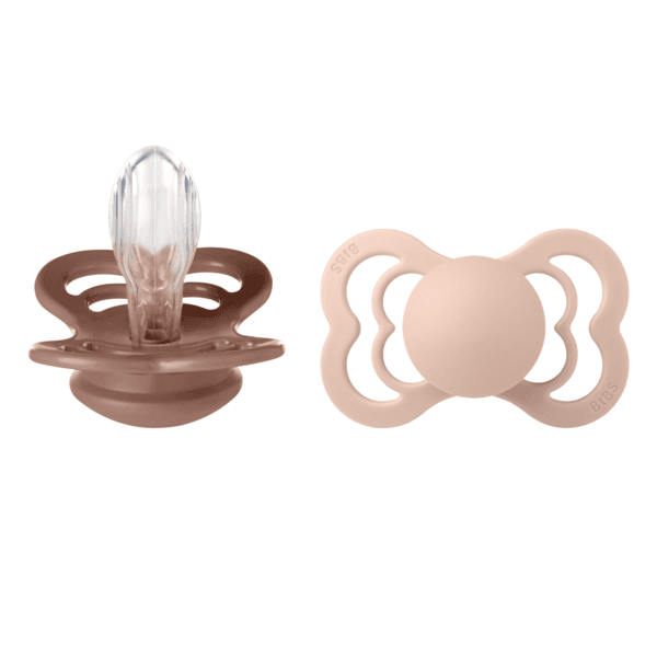 BIBS Supreme snuðin eru með fiðrilda laga skjöld. Túttan er flöt og úr siliconi. Túttan er mótuð til þess að draga úr þrýstingi á tönnum og kjálka. Koma í mörgum litum og tveirum stærðum, 0 mán+ og 6 mán+. Koma tvö saman í pakka.