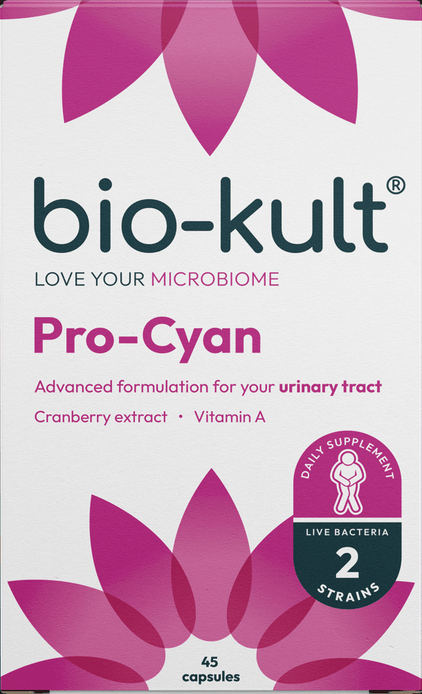 Bio-Kult Pro-Cyan er háþróuð þrívirk góðgerlablanda fyrir heilbrigða þvagrás.