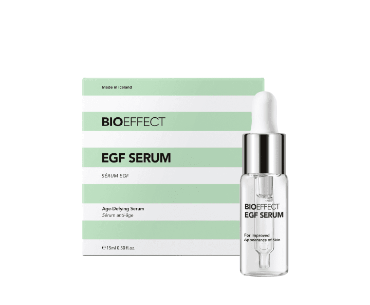 BIOEFFECT EGF Serum er byltingarkennd húðvara sem er sérhönnuð til að draga úr ásýnd fínna lína og vinna gegn sjáanlegum öldrunarmerkjum. Lykilhráefnið er EGF prótín úr byggi — endurnærandi og rakabindandi boðskipaprótín og jafnframt það fyrsta sinnar tegundar í heiminum sem unnið er úr plöntum. Fjölmargar rannsóknir hafa staðfest margvíslegan árangur á borð við aukinn raka og þéttleika húðarinnar. Upplifðu hámarksárangur með hreinni húðvöru sem inniheldur aðeins 7 náttúrulega virk efni.