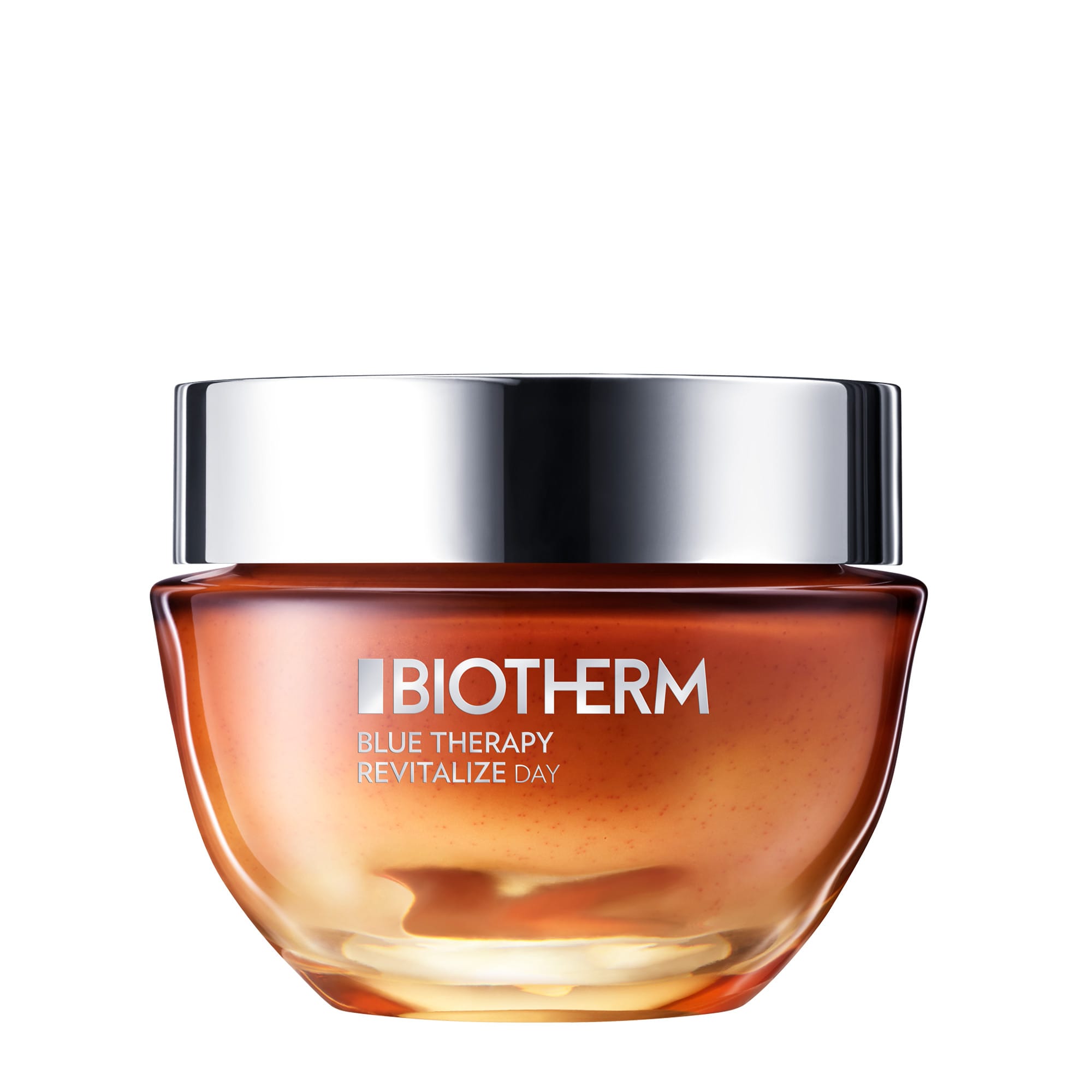 Blue Therapy Revitalize Day er styrkjandi og endurlífgandi dagkrem fyrir andlit, háls og bringu sem hentar konunni sem vill markvissa andlitsmeðferð sem dregur sýnilega úr öldrunarmerkjum og gefur ljóma. Dagkremið inniheldur einstaka þörunga Amber Algae auk blöndu af styrkjandi efnum á borð við endurnýjandi lykilinnihaldsefni , Life Plankton™ probiotic af nátturulegum uppruna. Sýnileg merki öldrunar minnka og húðin styrkist, öðlast meiri raka, verður sléttari og mýkri. Að auki er Blue Therapy Revitalize Day auðgað með gylltum örperlum sem gefa húðinni samstundis geislandi ljóma. Dag frá degi verður húðin bjartari og ferskari. Blue Therapy Revitalize kemur einnig sem tonic og nærandi næturkrem. Hentar fyrir viðkæma húð.