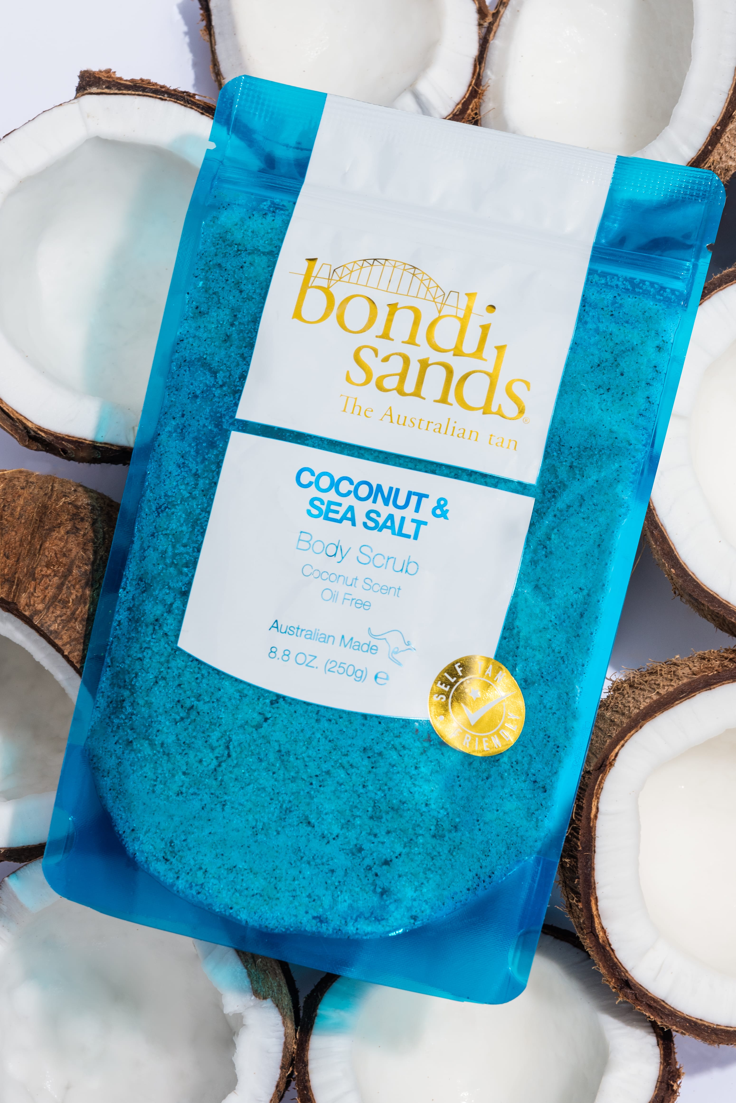 Bondi Sands Body Scrub inniheldur náttúruleg efni eins og ástralskan sand og sjávarsalt sem skrúbba í burtu dauðar húðfrumur