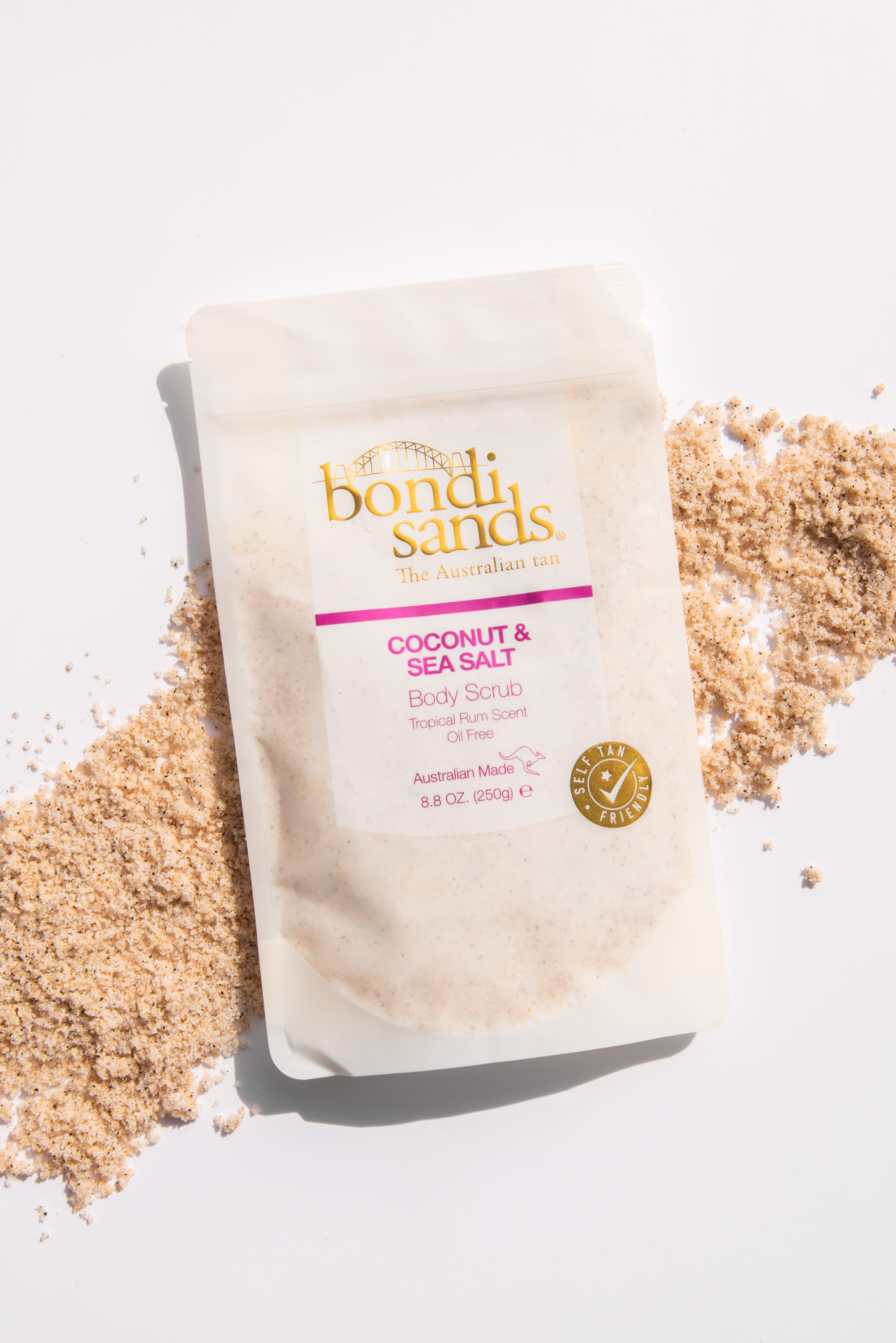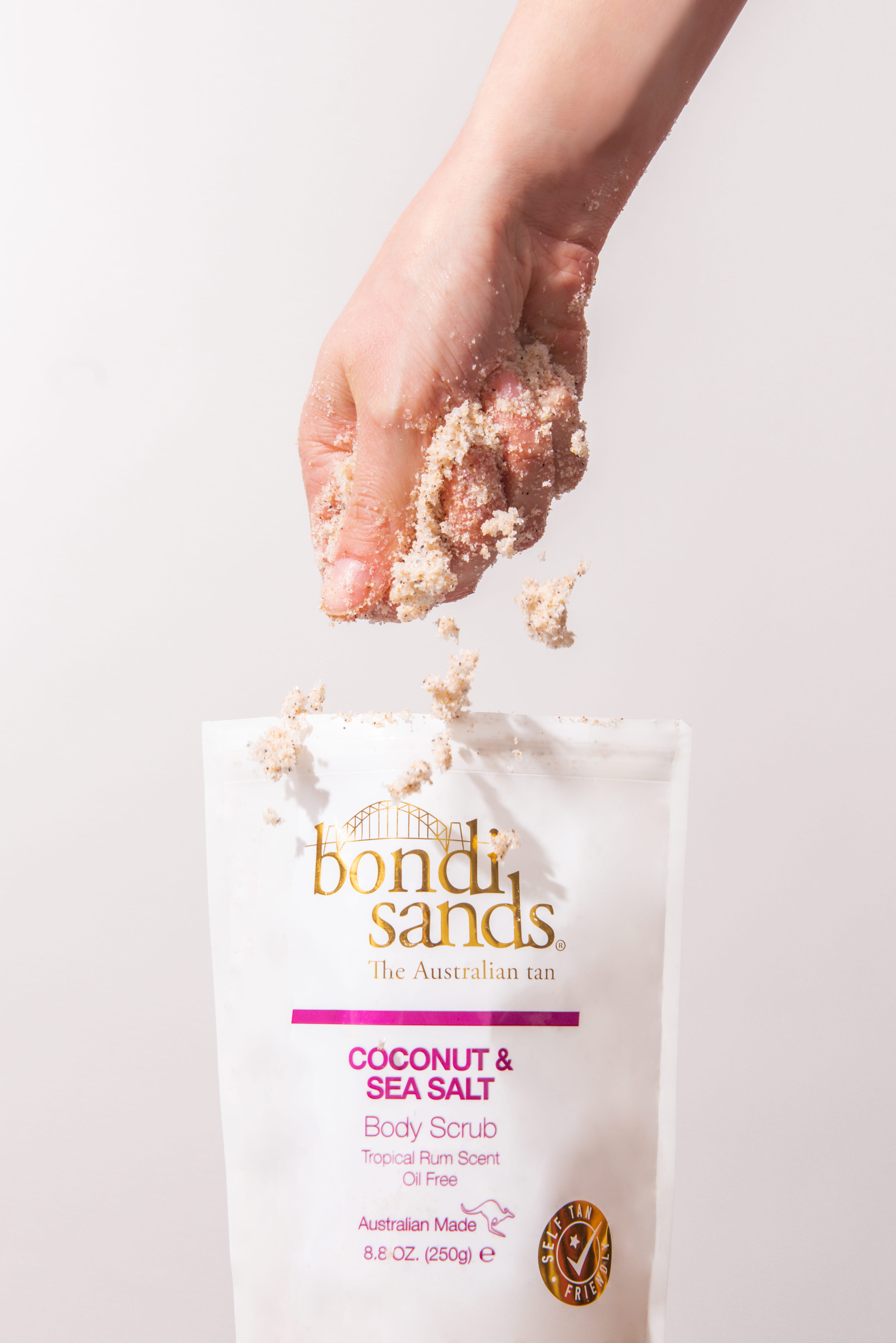 Bondi Sands Body Scrub inniheldur náttúruleg efni eins og ástralskan sand og sjávarsalt sem skrúbba í burtu dauðar húðfrumur. Kókoshnetuhýði og Valhnetukjarnar vinna einnig í því að fjarlægja óhreinindi ásamt því að skilja húðina eftir mjúka og hreina.
