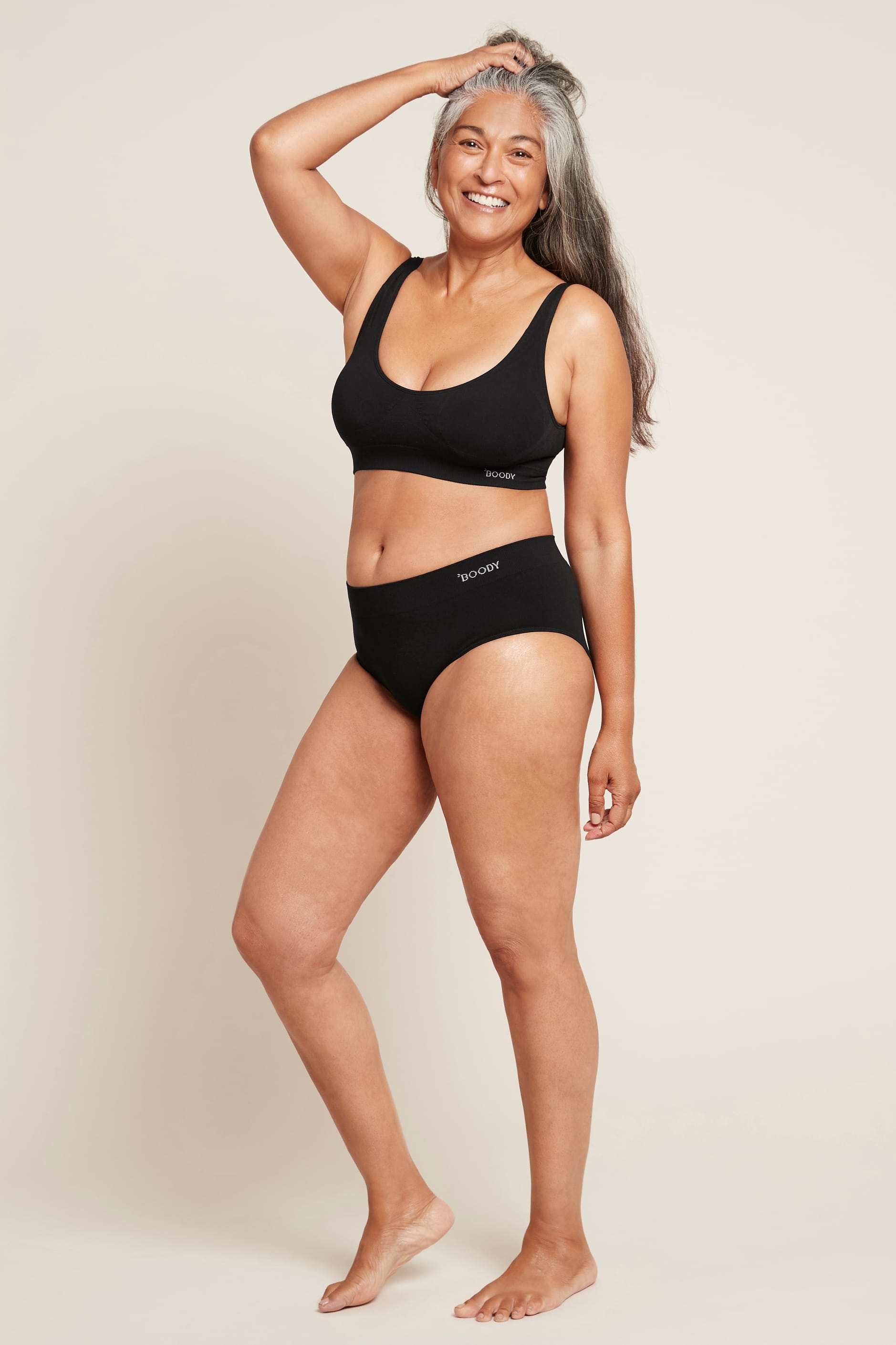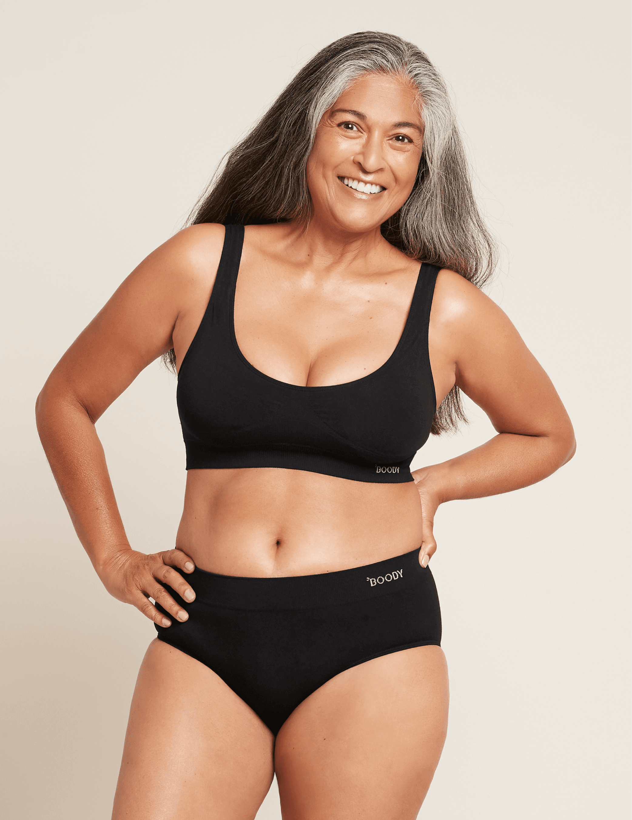 Frábær toppur með púðum, þægilegur og með stuðning. Er án allra sauma og auðvelt að fara í hann. Búið er að fjarlægja allt sem gerir brjóstahladara óþægilega eins og spangir, lokur og mjóa hlýra. Unninn úr lífrænt ræktaðri bambus bómull sem er með öndunareiginleika.