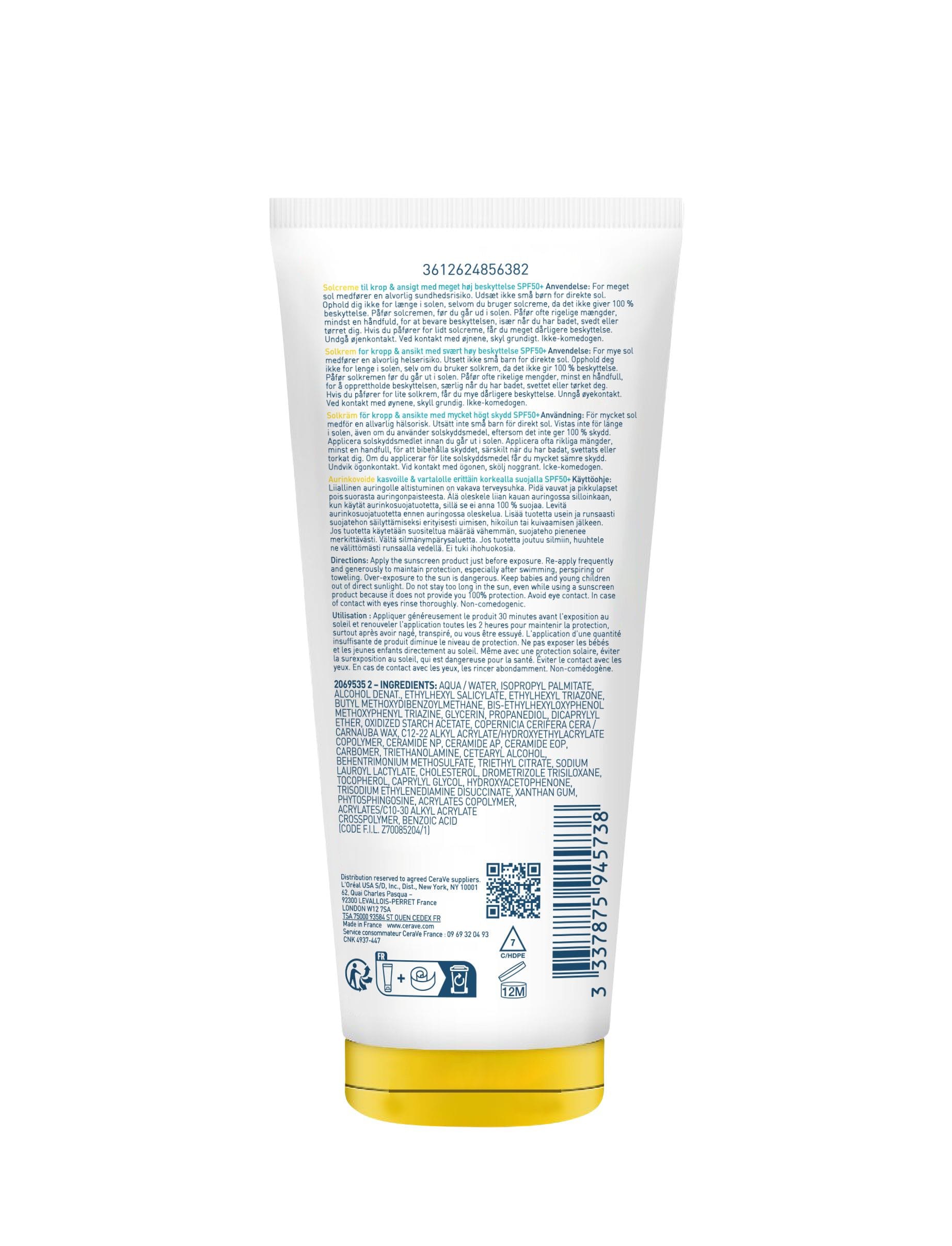 Létt sólarvörn með SPF 50+ sem fer hratt inn í húðina og veitir mjög mikla vörn fyrir líkama og andlit, gegn bæði UVB- og UVA-geislum. Hjálpar til við að vernda og viðhalda ysta lagi húðarinnar og veitir raka. Inniheldur 3 nauðsynleg ceramíð og MVE-tækni.