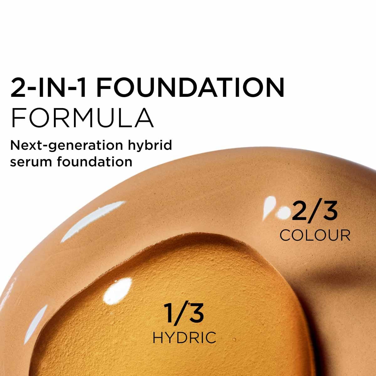Næsta kynslóð af serumfarða sem sameinar farða og húðumhirðu á nýjan hátt. Þessi einstaka formúla tekur yngjandi ljóma upp á næsta stig og veitir húðinni satínkennda áferð. Þökk sé stillanlegu skífunni á flöskunni, þá er hægt að sérsníða miðlungs til fulla þekjuna að þínum þörfum en farðinn kemur í 37 litatónum fyrir allar húðgerðir og húðtóna.