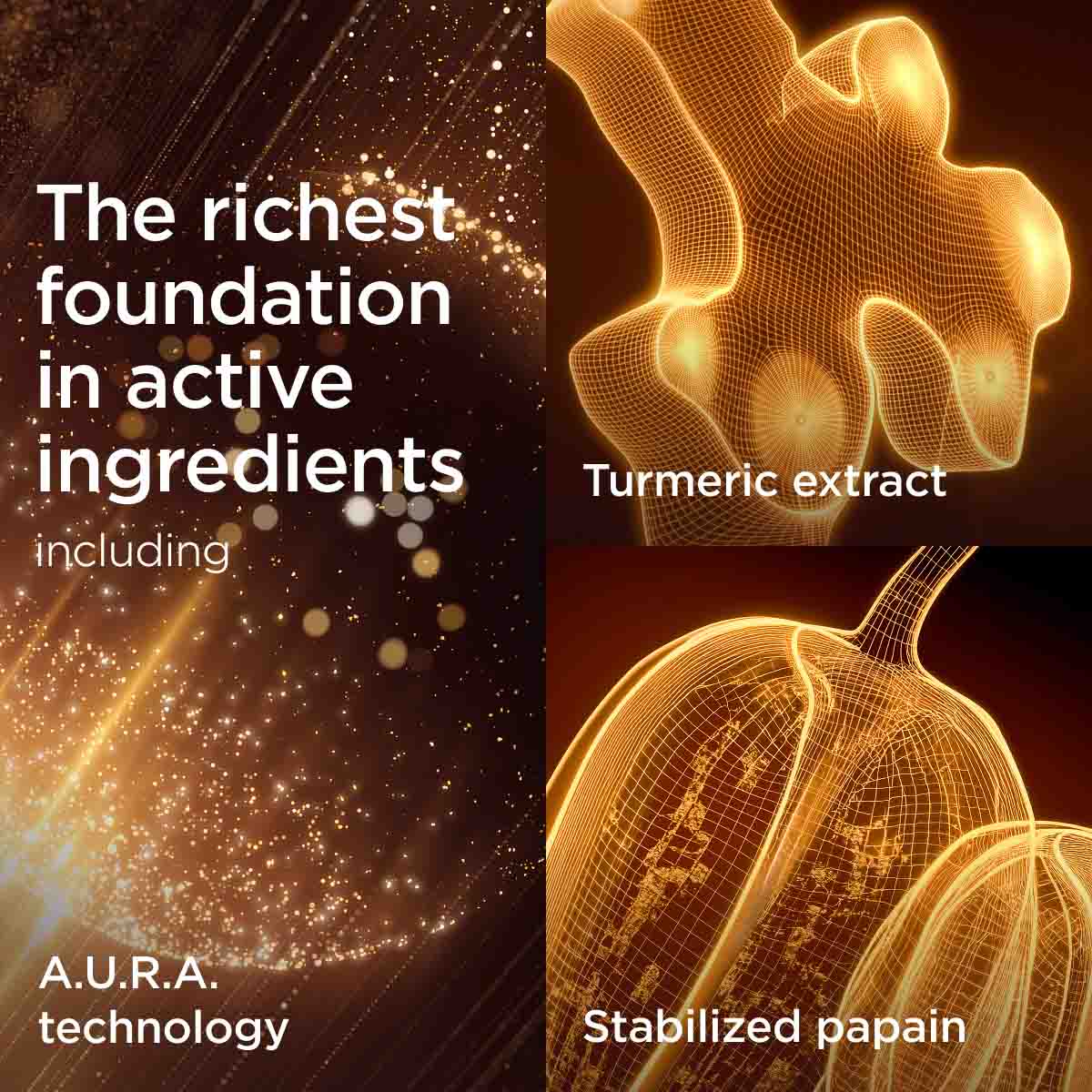 Í fyrri fasanum, [COLOUR], má finna nýja tækni sem nefnist A.U.R.A. (Advanced Ultra Radiance Amplifier) en hún byggir á ljómaaukandi innihaldsefnum og lýsandi örkristöllum sem hjálpa til við að veita samstundis ljómaáhrif.