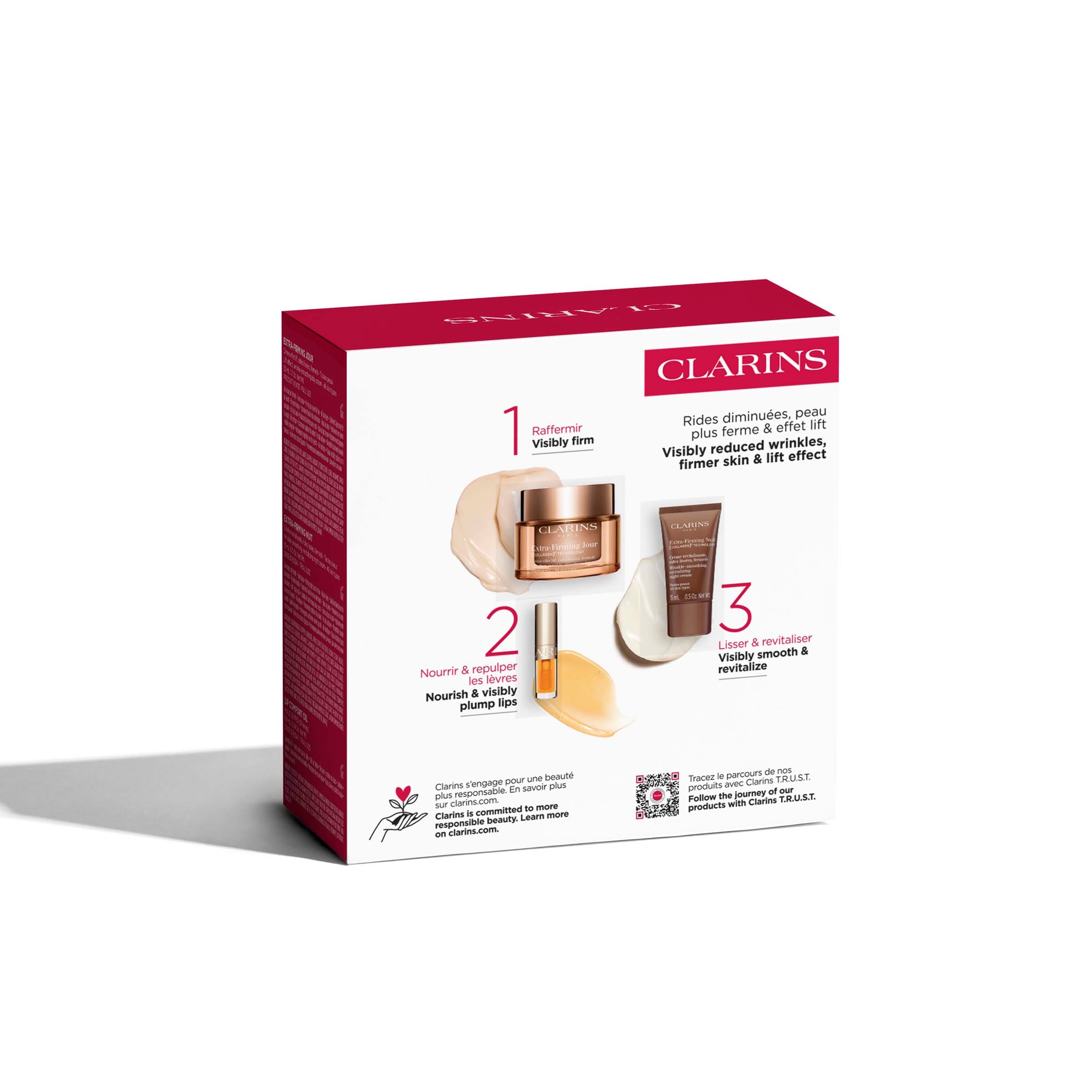 Gjafasettið inniheldur Extra-Firming Day Cream 50ml ásamt lúxusprufu af Extra-Firming Night Cream 15ml og Lip Comfort Oil 1,4ml