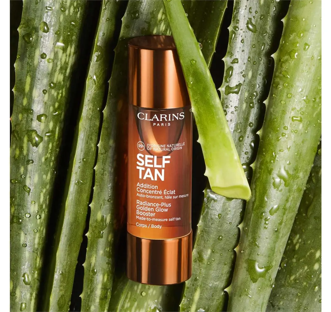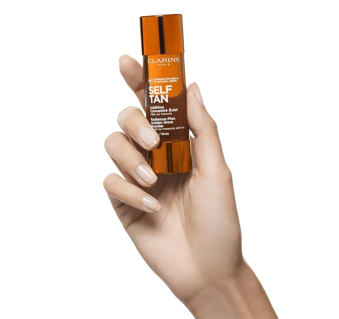 Bættu sérsniðnum heilbrigðum ljóma við daglega húðumhirðu þína með Clarins Radiance-Plus Golden Glow Booster. Þú blandar einfaldlega sjálfsbrúnkudropunum við hvaða Clarins-húðvöru sem er og færð þannig náttúrulegan lit auk rakagefandi og stinnandi ávinninga daglegra húðvara þinna. Öruggt og einfalt skref að sjálfsbrúnku sem hentar þér með 1, 2 eða 3 dropum. Prófað af húðlæknum. Stíflar ekki húðina. Hentar öllum húðgerðum.