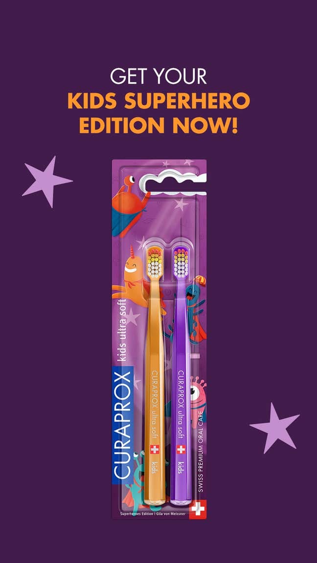 Curaprox Kids tannburstinn er hannaður með áherslu á þægindiog árangur og fást nú í takmarkaðan tíma í nýjum búning.