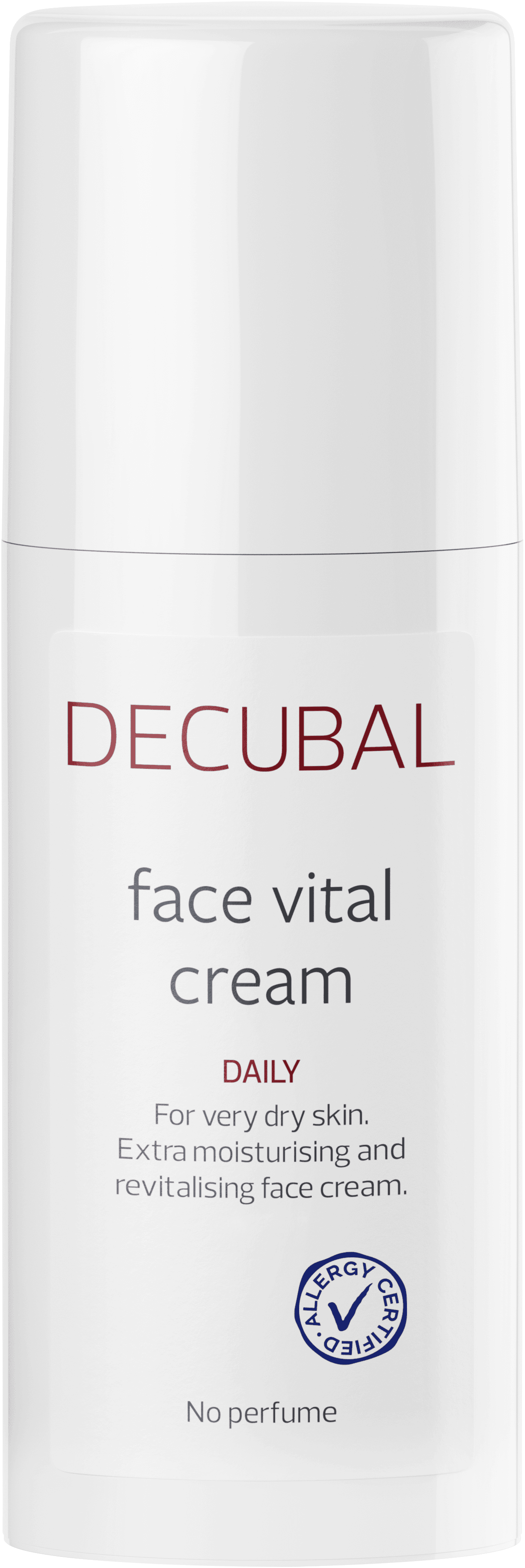 Decubal Face Vital er sérstaklega nærandi og enduruppbyggjandi andlitskrem fyrir mjög þurra húð. Kremið er ekki fitkennt og smýgur því hratt inn í húðina og hentar vel undir farða. Sérstaklega þróað fyrir þurra húð sem þarfnast enduruppbyggingar.