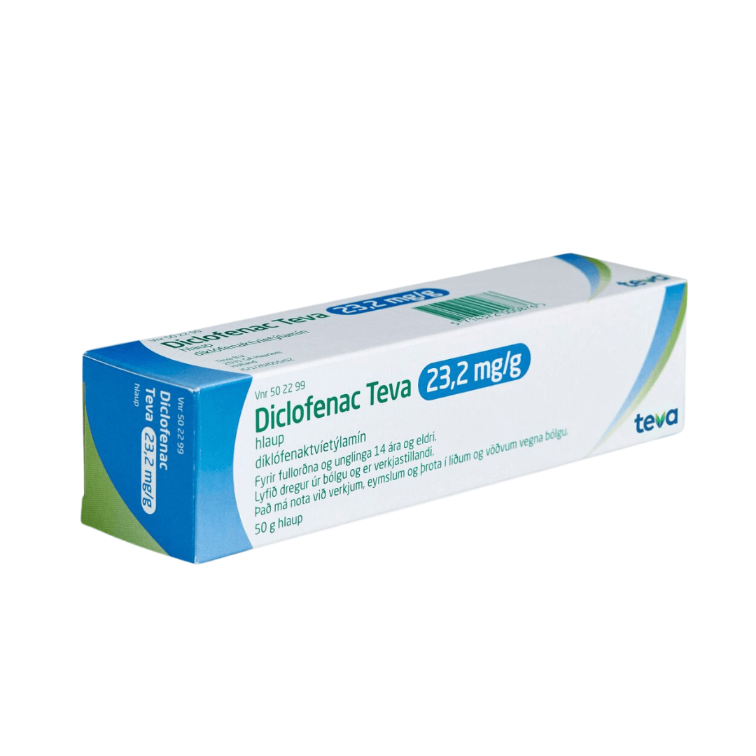 Diclofenac Teva inniheldur própýlenglýkól (E1520) Þetta lyf inniheldur 54 mg af própýlenglýkóli í 1 g af hlaupi. Hjálparefni: Ísóprópýlalkóhól, Própýlenglýkól (E1520), Kókóýlkaprýlókaprat, Paraffínolía, Karbómer, Makrógólsetósterýleter, Díetýlamín, Olíusýra (E570), Bútýlhýdroxýtólúen (E321), Ilmefni (inniheldur sítrónellól, geraníól, bensýlalkóhól, línalúl, límónen, sítral, farnesól, kúmarín, evgenól), Eimað vatn
