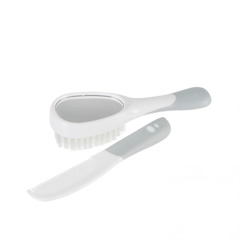 * Bæði burstinn og greiðan eru með mjúkum handföngum sem auðvelda litlum höndum að ná góðu gripi.