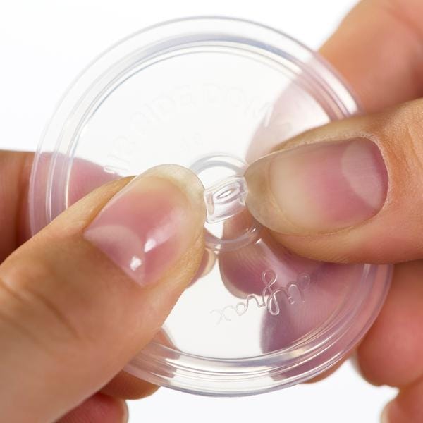 · Fyrir notkun er ráðlagt að ganga úr skugga um að pínulitla gatið fyrir miðju silkikonloksins sé opið með því að