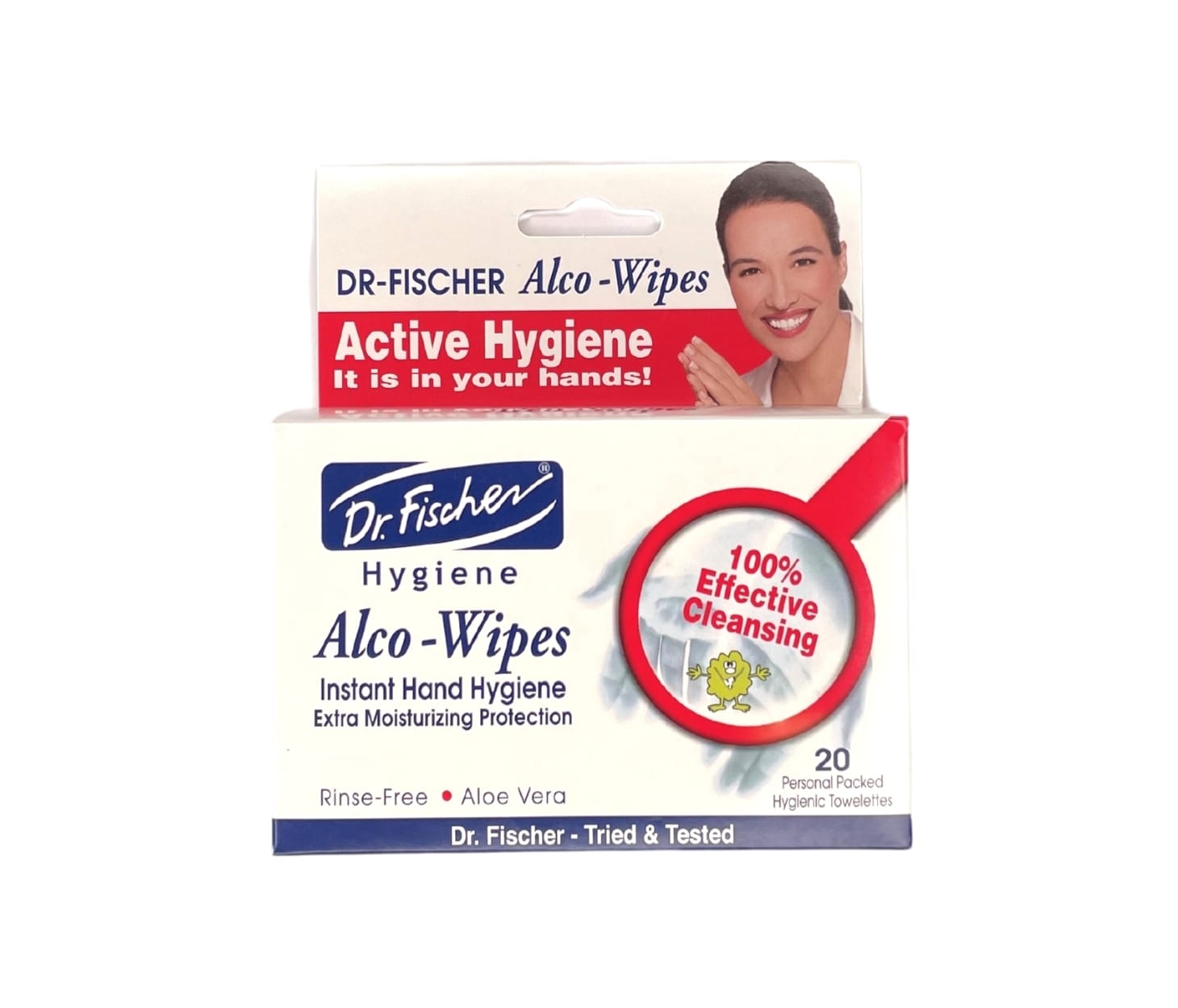 Sótthreinsandi handklútar sem innihalda alkóhól auk blöndu af rakagefandi efnum eins og Aloe-Vera og Glycerin. Sérpakkaðir og henta vel á ferðalögum þar sem aðgengi að sápu og vatni er takmarkað. 20 stykki í pakka.