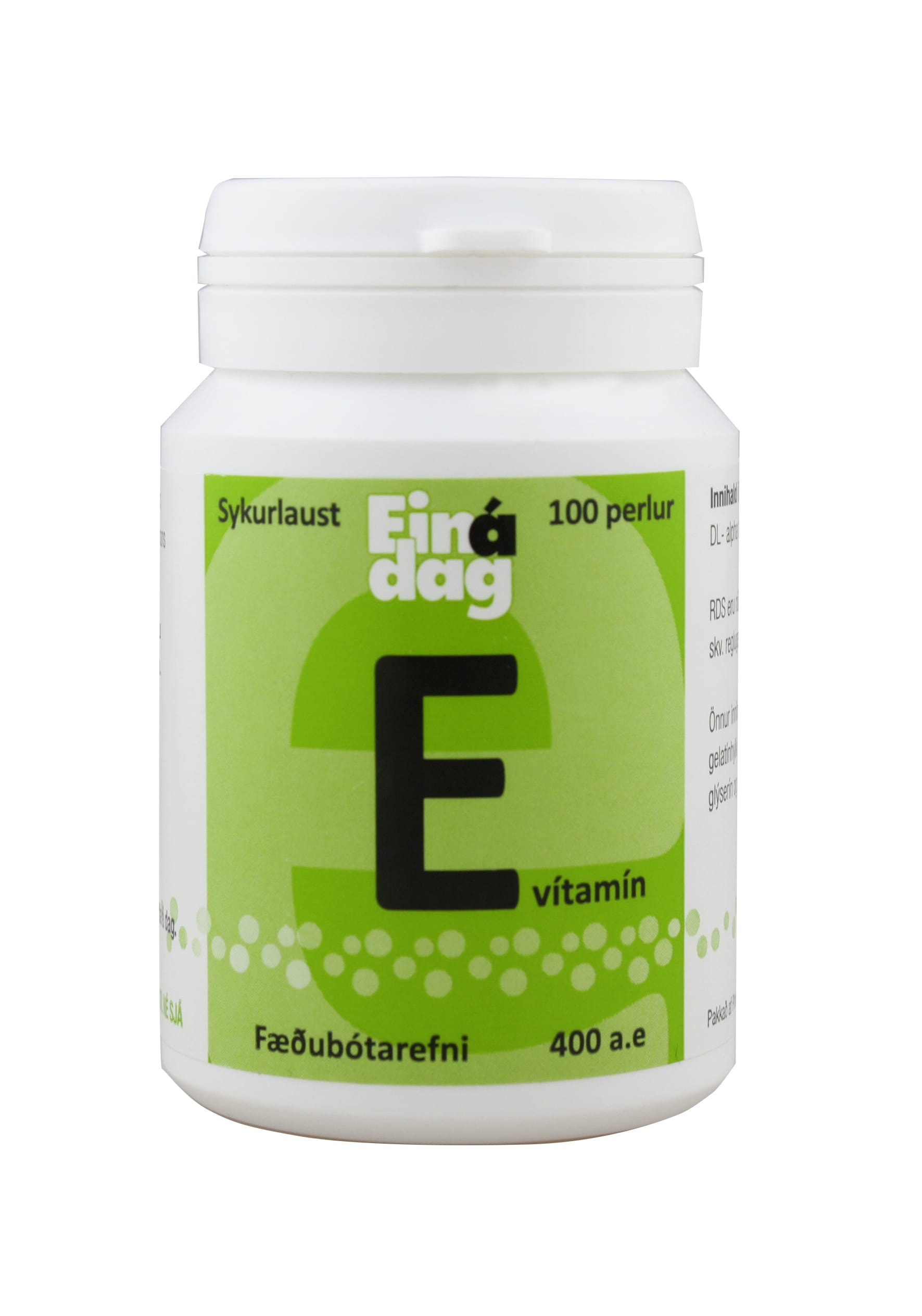 Innihald: E-vítamín 400 a.e. (DL-alpha tocopheryl acetate)Sojabaunaolía Gelatínhylki: (gelatín, grænmetisglýserín, vatn)