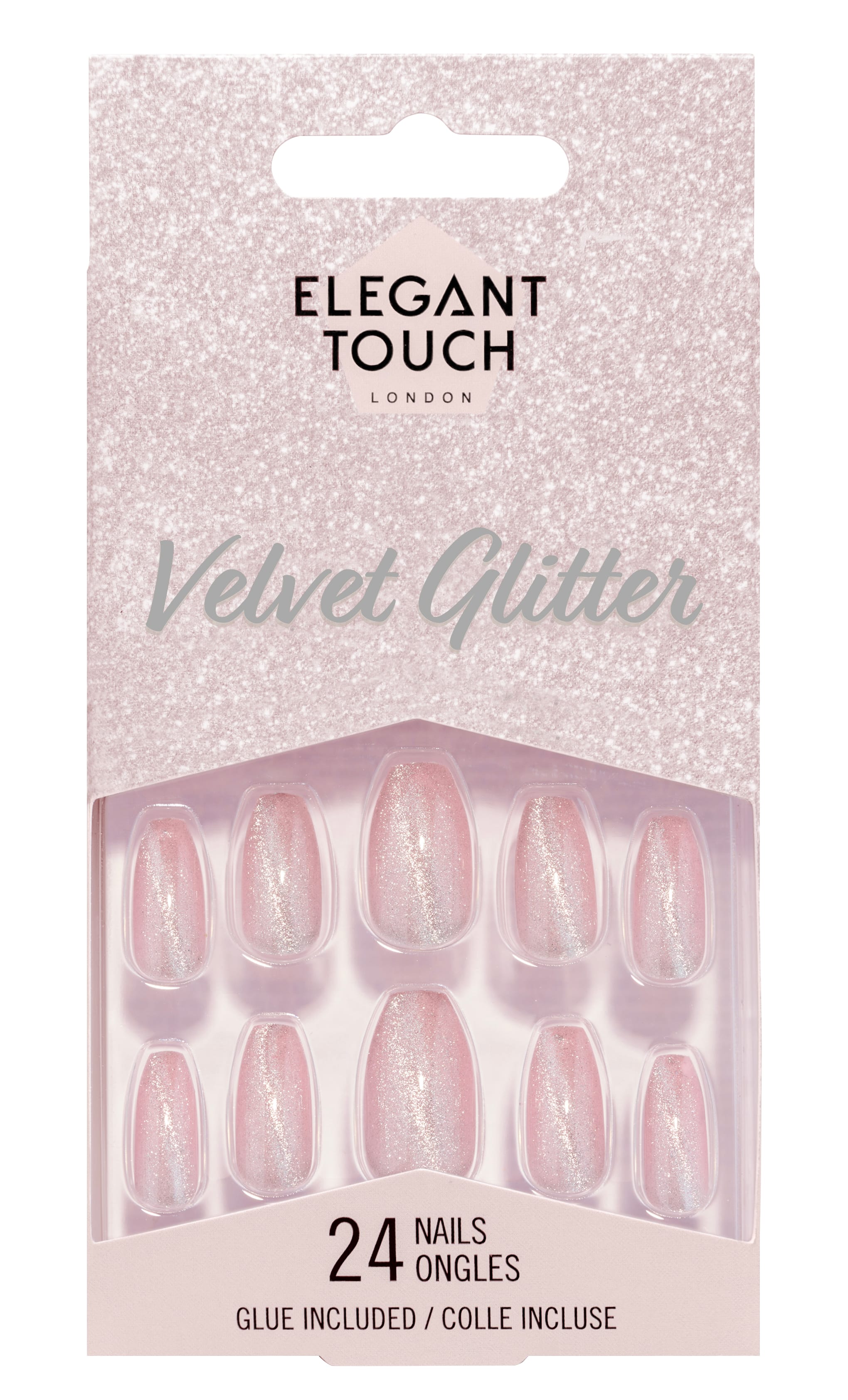 Elegant Touch er stærsta gervinagla vörumerki Bretlands og gervineglurnar eru í hæsta gæðaflokki. Neglurnar eru þunnar svo þær virka ekki gervilegar og laga sig að náttúrulegu nöglinni. Neglurnar koma í mismunandi lagi og litum svo hver og einn ætti að geta fundið sínar fullkomnu neglur. Glitter Celestial frá Elegant Touch eru töfrandi fallegar neglur með bleiku glimmeri. Neglurnar eru með coffin lögun, þar sem neglurnar eru aðeins mjórri að framan en með flatri hlið.