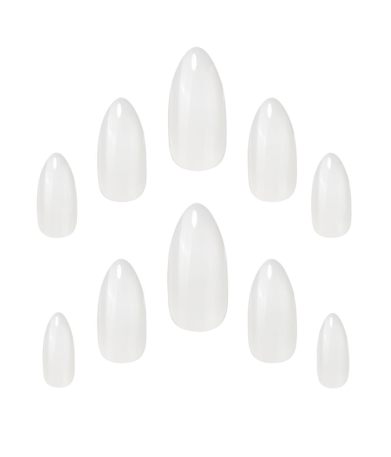 Bare neglurnar eru glærar að lit og henta fullkomlega til að naglalakka eða skreyta að eigin vild. Stiletto neglurnar eru langar, mjóar fram og sérstaklega glæsilegar.