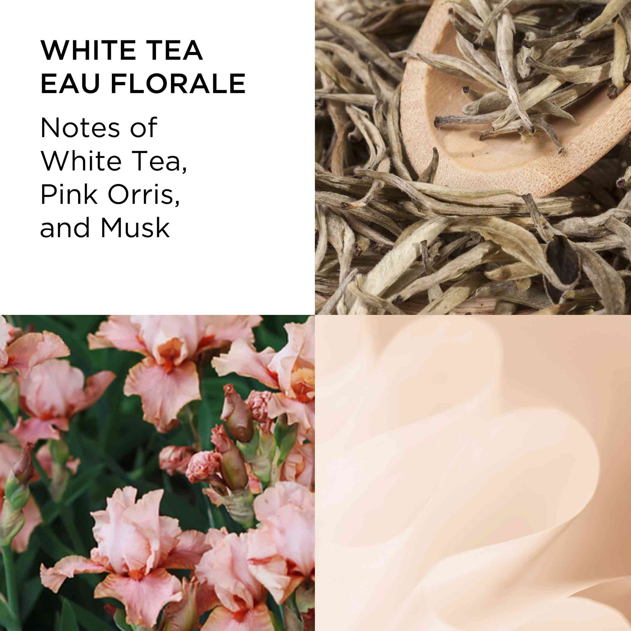 White Tea Eau Florale kvenlegur ilmur sem fangar fegurð lífsins með fallegum blómum sem örfa skynfærin. White Tea línan fagna nýrri viðbót í ilmflóruna með þessari glæsilegu blóma-musk viðbót.