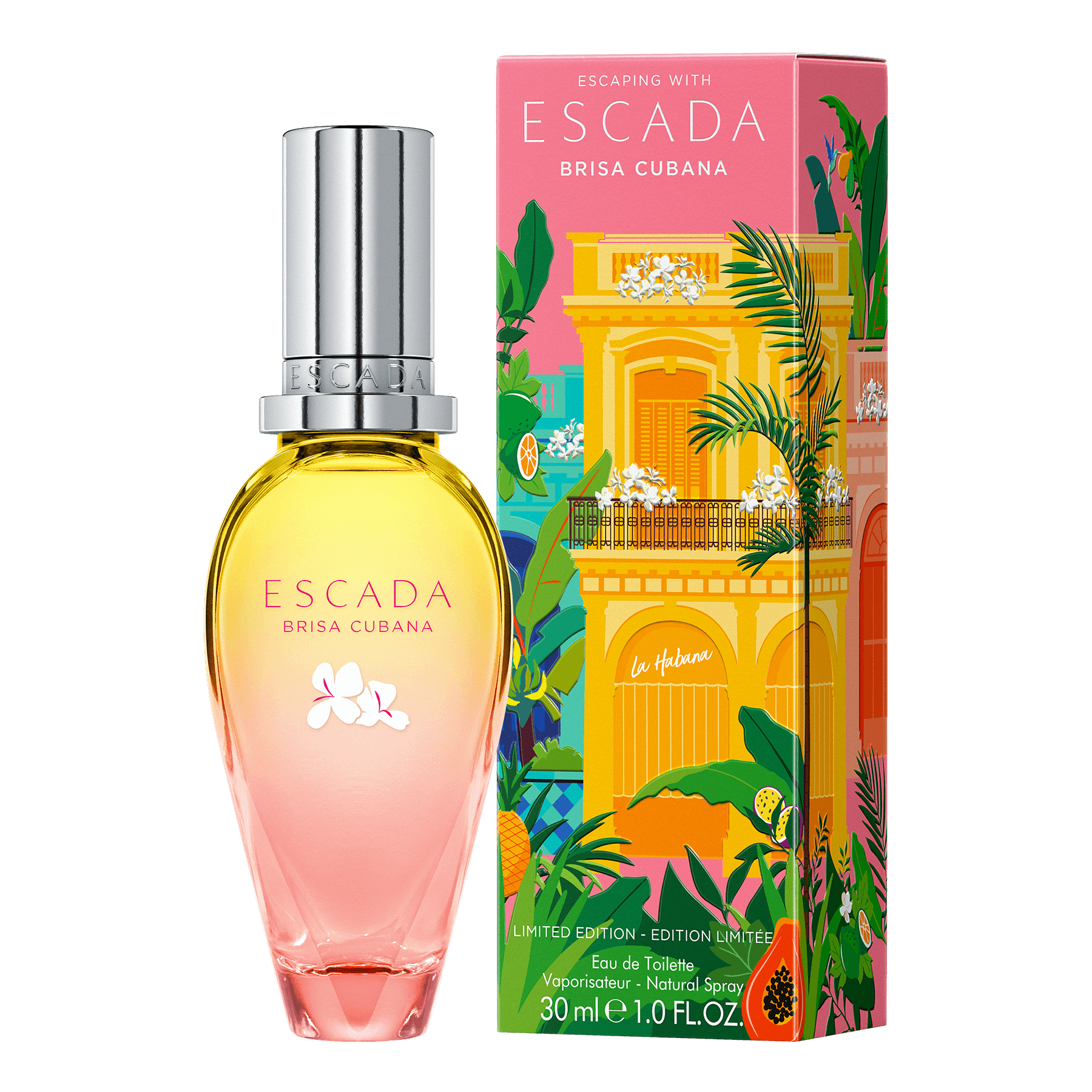 ESCADA Brisa Cubana Eau de Toilette, iniheldur m.a. mariposa blóm, mintu olíu, og lime. Fullkominn sumarblær sem auðveldlega fleytir huganum yfir hafið á karabískar strendur.