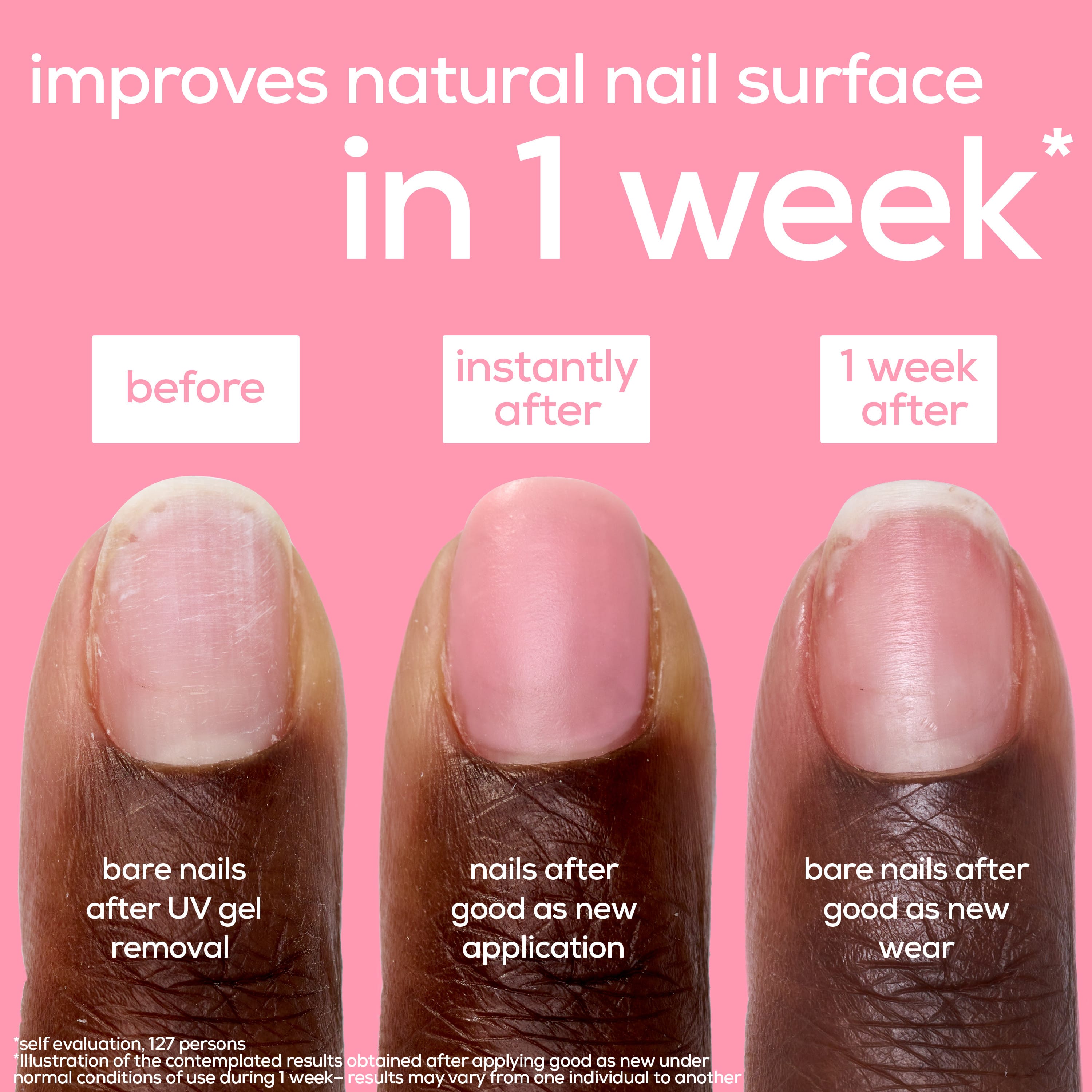 Good As New er naglalakk sem inniheldur keramíða sem bætir útlit og áferð naglanna þinna. Lakkið er hálfgegnsætt með bleikum lit og hálf mattri áferð.
