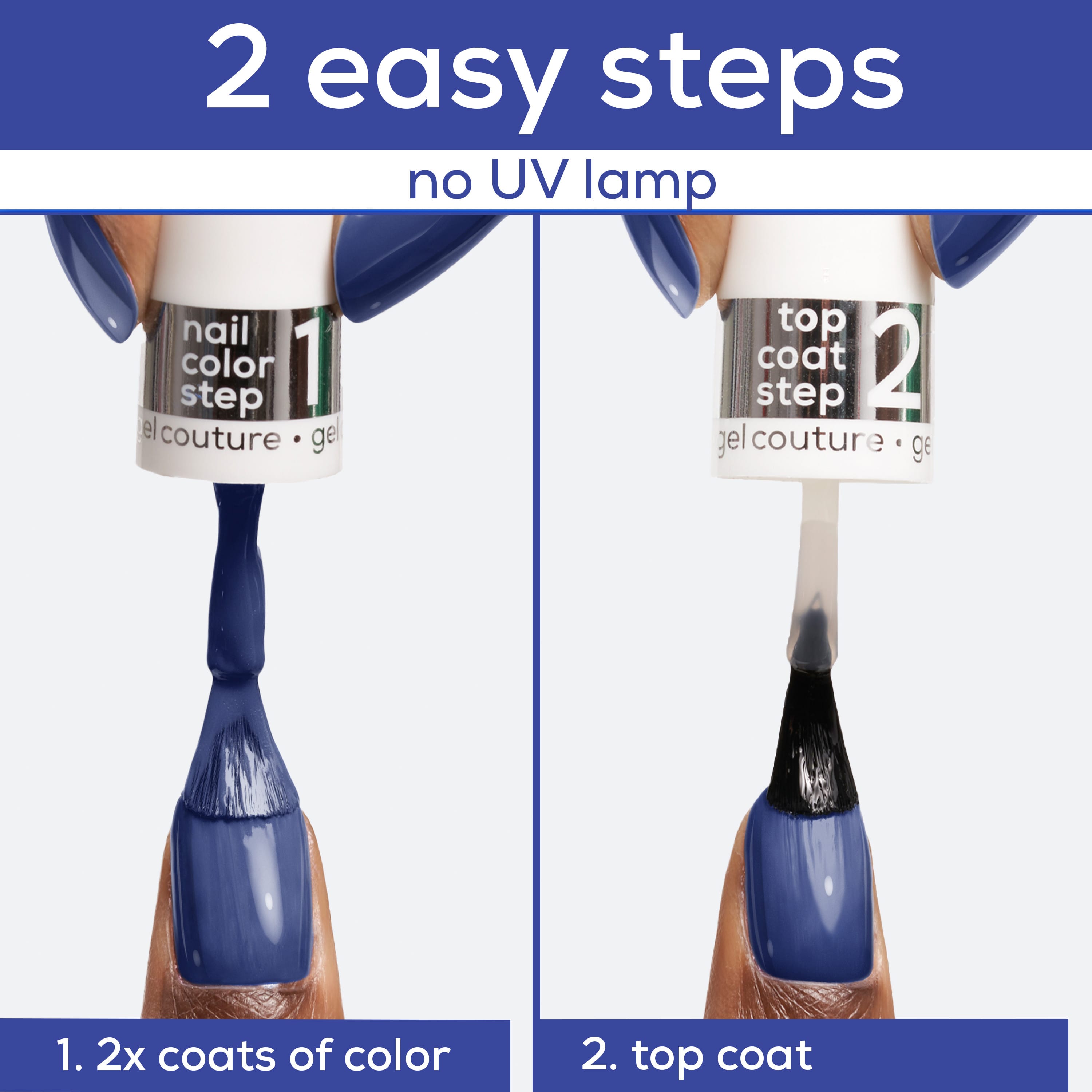 Gel Couture eru naglalökk sem líkja eftir áferð gel naglalakka sem eru notuð á snyrtistofum nema það að hitalampi er óþarfur! Notið Gel Couture yfirlakkið til að tryggja 12 daga endingu og háglans!