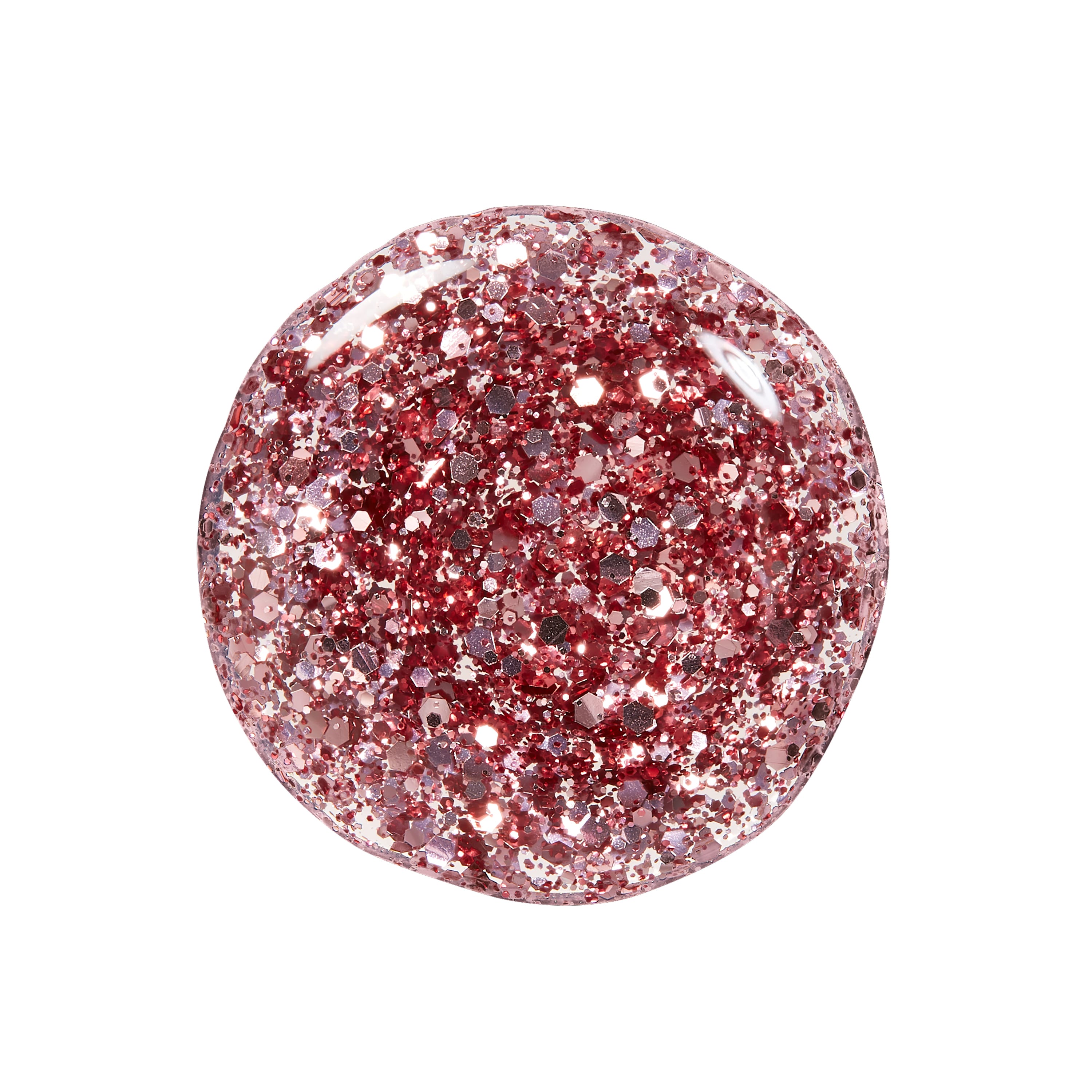 Glimmer yfirlakk með grófum bleikum og rauðum glimmerögnum.