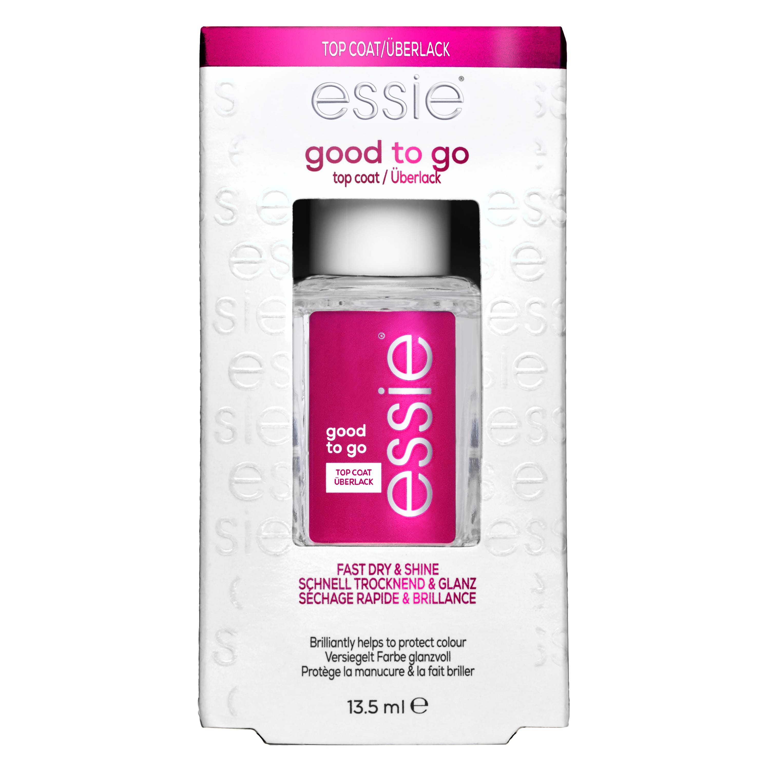 Essie Top Coat – Good to Go er fallegt yfirlakk sem gefur fallegan glans og mikið hald. Formúla lakksins flýtir fyrir þornun lakksins svo neglurnar verða tilbúnar mun fyrr!