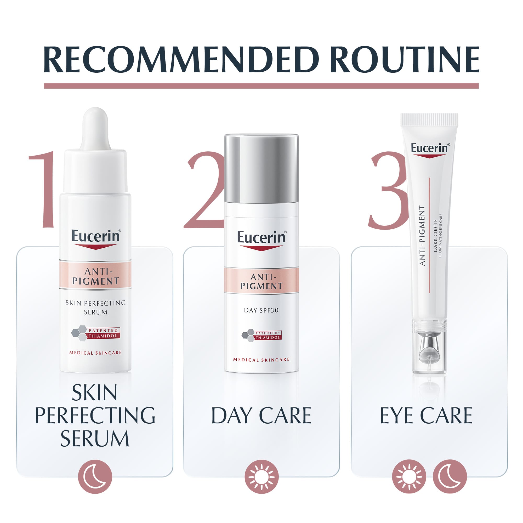 Augnkrem sem leiðréttir og dregur úr hvers kyns dökkum baugum, þrota og sléttir fínar línur. Eucerin Anti-Pigment Dark Circle Illuminating Eye Care sameinar öflug virk innihaldsefni sem vinna á mismunandi hátt til að efla ljóma húðarinnar og draga úr dökkum blettum og lýsa og slétta augnsvæðið. Létt formúlan inniheldur Thiamidol, áhrifaríkt og einkaleyfisverndað innihaldsefni sem vinnur á rót oflitunar með því að draga úr melanínframleiðslunni. Ljósendurkastandi litarefni til að lýsa upp augnsvæðið. Hýalúrónsýra dregur úr þrota og sléttir fínar línur. Óligópeptíð örva kollagennet húðarinnar fyrir stinnari húð.