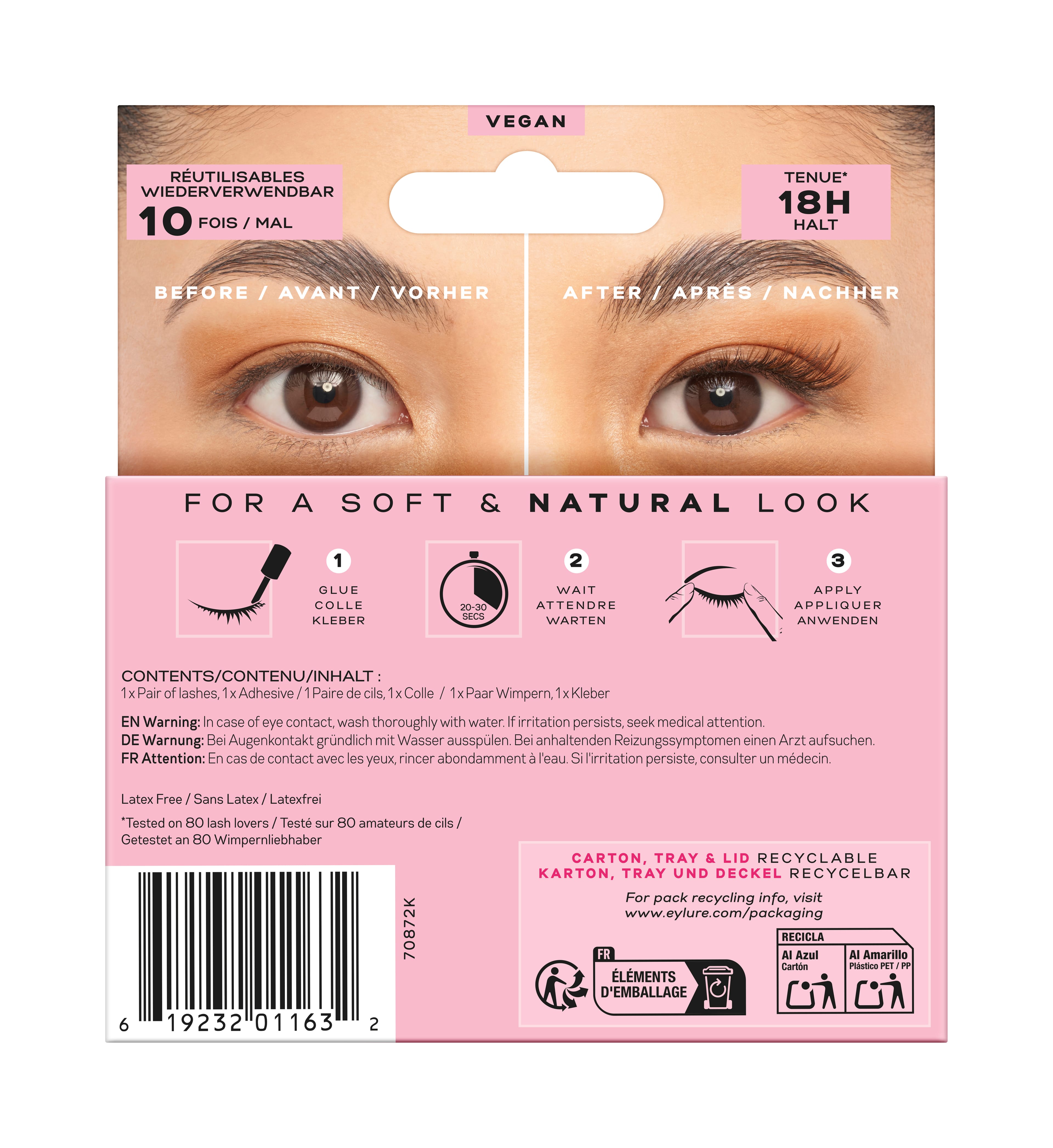 No.001 brún/svörtu augnhárin eru létt, wispy augnhár sem eru tilvalin fyrir þá sem eru að leita að náttúrulegu augnhára útliti. 3/4 lengdin er þægileg í notkun og því óþarfi að snyrta eða stytta augnhárin. Með styttri augnháraböndum er þetta fullkomið fyrir þá sem eru að nota augnhár í fyrsta skiptið. Hægt að nota allt að 10 sinnum. Hver augnhárapakki kemur með latexlausa augnháralíminu okkar sem endist í allt að 18 klukkustundir.