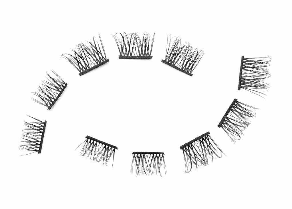 Haldið augnháraklasanum með gyllta Eyelure augnhára ásetjaranum og setjið límið varlega á bandið. Setjið augnháraklasann undir þín nátturulegu augnhár og notið ásetjarann til að klemma þín augnhár og augnháraklasann saman. Til að fjarlægja augnháraklasana berið þið Underlash Remover varlega á augnhárin og leyfið efninu að sitja á í 20-30 sekúndur. Tosið svo varlega í augnháraklasana til að fjarlægja þá.