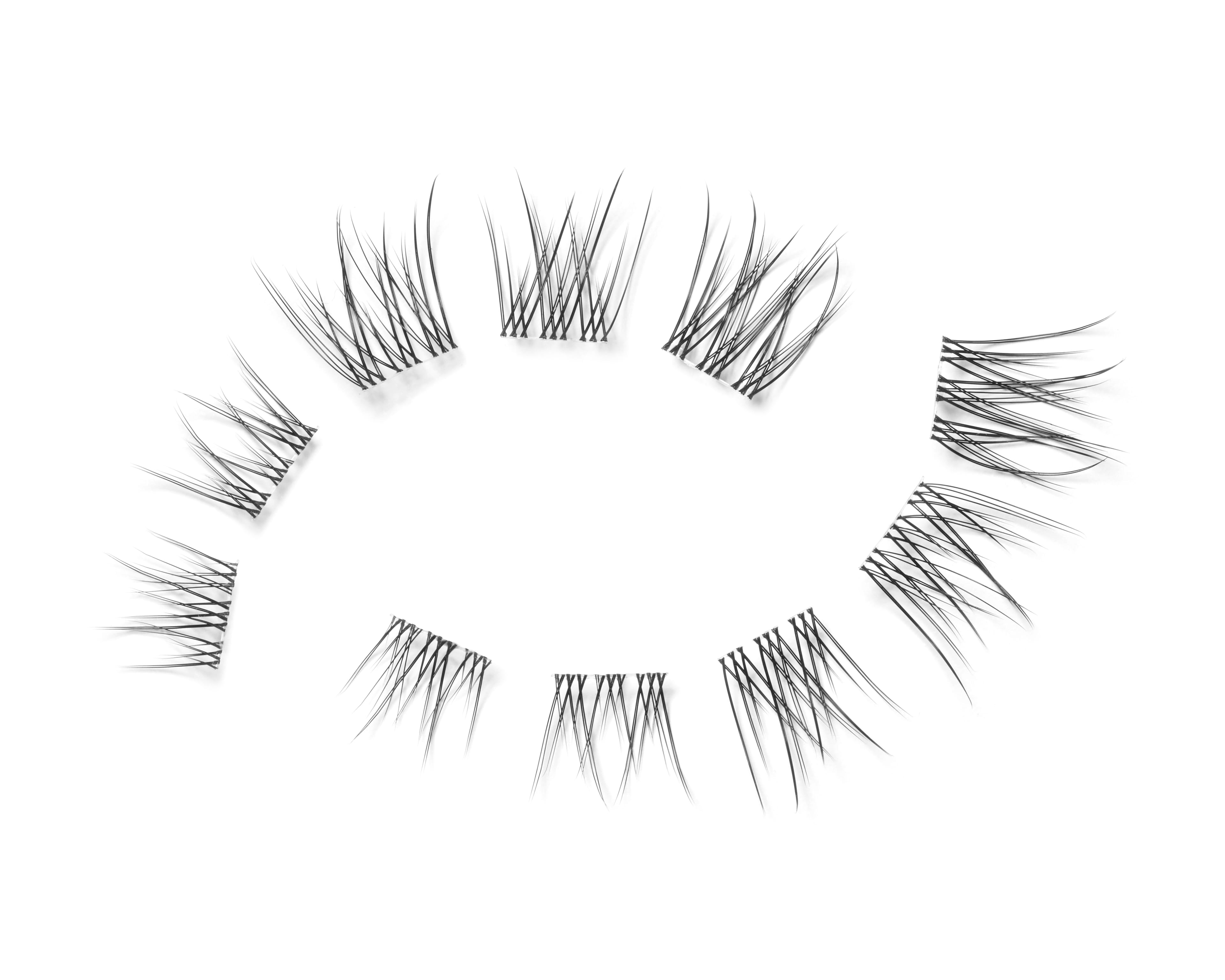Haldið augnháraklasanum með gyllta Eyelure augnhára ásetjaranum og setjið límið varlega á bandið. Setjið augnháraklasann undir þín nátturulegu augnhár og notið ásetjarann til að klemma þín augnhár og augnháraklasann saman. Til að fjarlægja augnháraklasana berið þið Underlash Remover varlega á augnhárin og leyfið efninu að sitja á í 20-30 sekúndur. Tosið svo varlega í augnháraklasana til að fjarlægja þá.