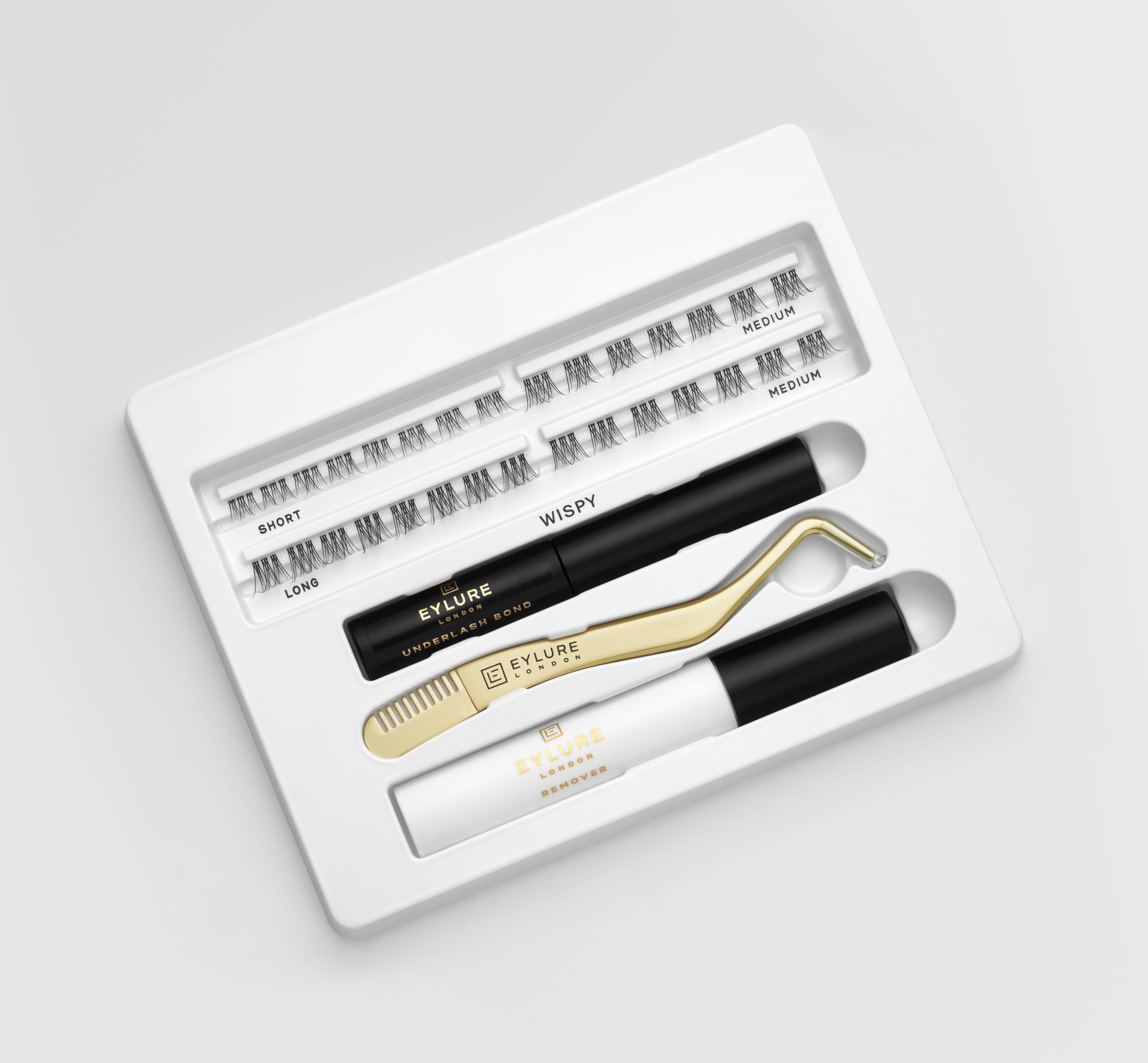 Nú þarft þú ekki að fara á stofu til að fá fallegar augnháralengingar. Með Eylure Underlash Salon extension kit getur þú sett á þig falleg og náttúruleg augnhár sem endast í allt að 7 daga. Settið inniheldur 40 augnháraklasa, gylltan ásetjara, lím og Remover til að fjarlægja augnhárin. Augnháraklasarnir eru afar auðveldir í ásetningu og eru ofur létt og þægileg á augunum. Þú færð allt að fimm ásetningar úr hverju setti. Eylure er fyrsta augnhára vörumerki í heiminum, og einnig það vinsælasta. Hjá Eylure má finna gervi augnhár sem henta öllum, hvort sem þau eru mjög náttúruleg eða dramatísk – eitthvað fyrir alla!