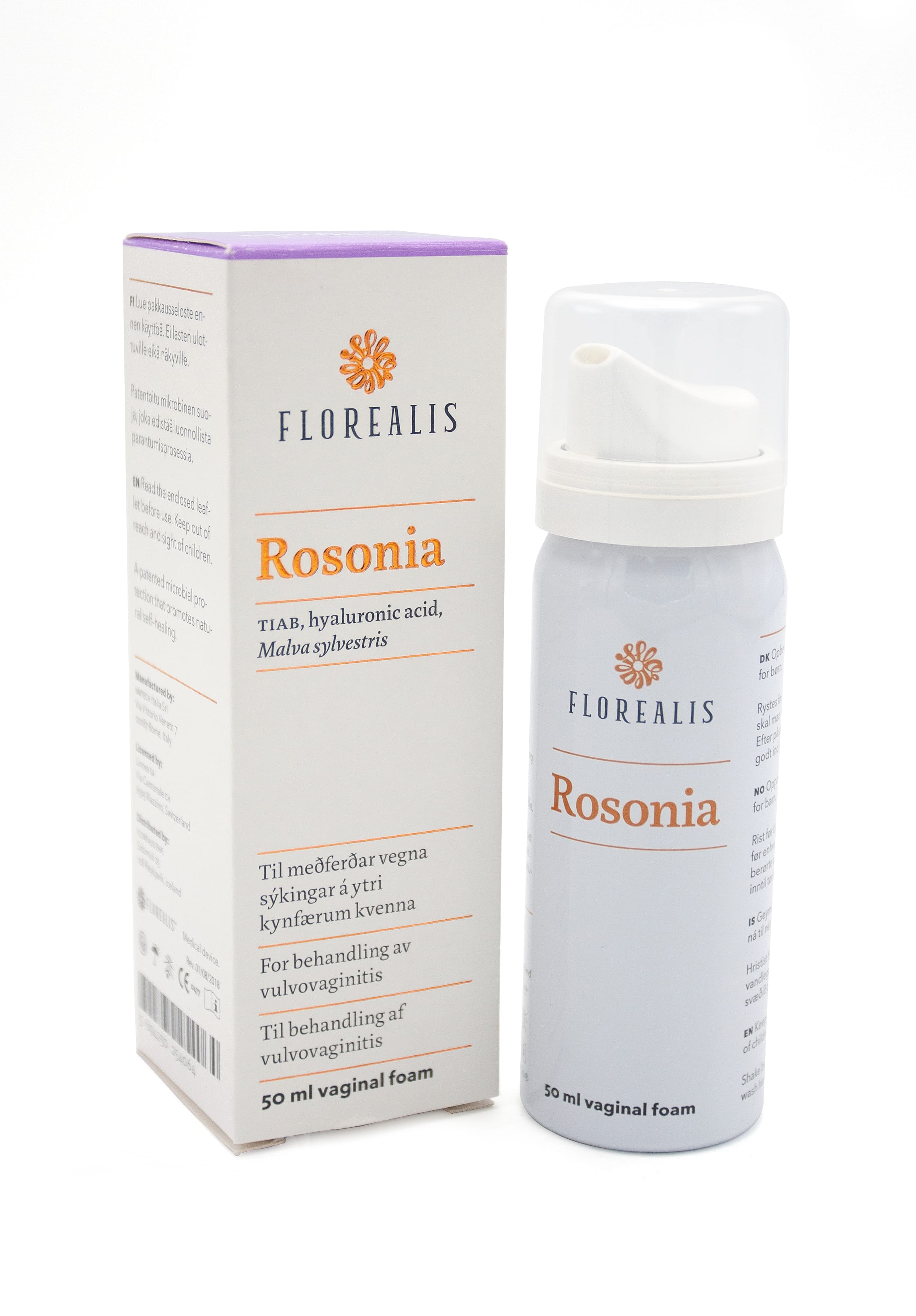 Rosonia er einstaklega mjúk froða sem hentar vel á viðkvæmt kynfærasvæði kvenna. Hún er ætluð til staðbundinnar meðferðar við óþægindum (kláða, sviða, ertingu), bólgum og sárum á kynfærasvæði kvenna.