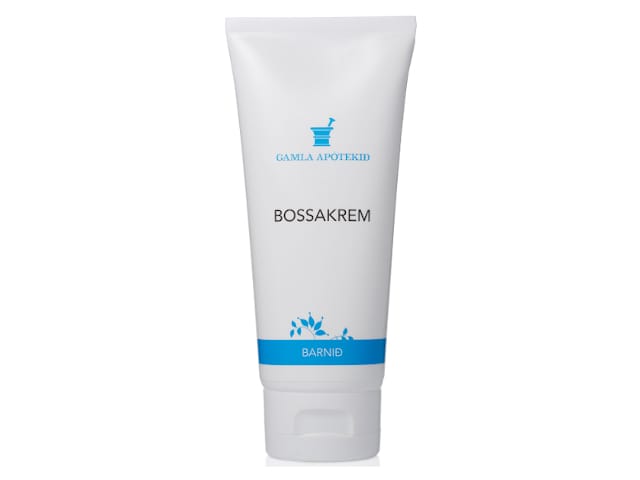 Mjúkur og græðandi áburður. Helst notaður á bleyjusvæði og húðfellingar barna. Þurrkar einnig upp svæði þar sem þess þarf. Hentar sérstaklega vel á sviða, útbrot og bleyjubruna. Bossakremið er sérstaklega hugsað fyrir viðkvæma húð og er án ilmefna, litarefna og rotvarnarefna.