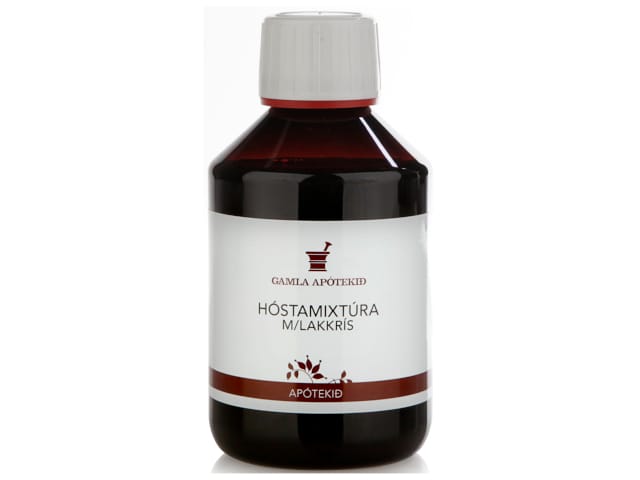 Slímlosandi og mýkjandi mixtúra með lakkrísbragði, dregur úr þurrum hósta og særindum. Má geyma við stofuhita. Hristist fyrir notkun.