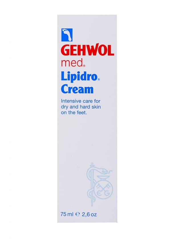 GEHWOL med Lipidro krem inniheldur innihaldsefni eins og hafþyrniolíu, avókadóolíu og urea ásamt þörungaþykkni til að róa þurra, viðkvæma húð.